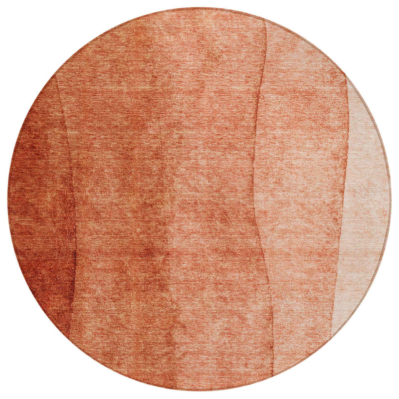 8' Red Copper And Terra Cotta Round Ombre Washable Indoor Outdoor Area Rug