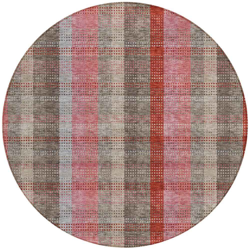 8' Red Pink And Pewter Round Plaid Washable Indoor Outdoor Area Rug - 跳到内容