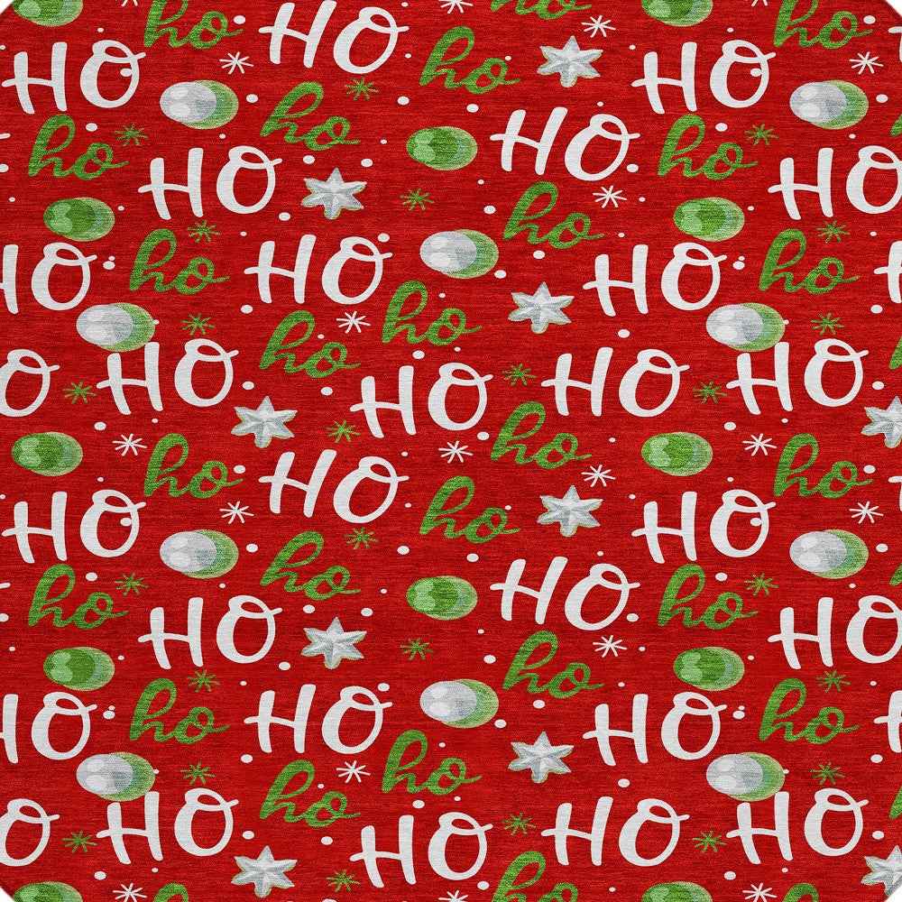8' Red White And Green Round Polka Dot Washable Indoor Outdoor Area Rug