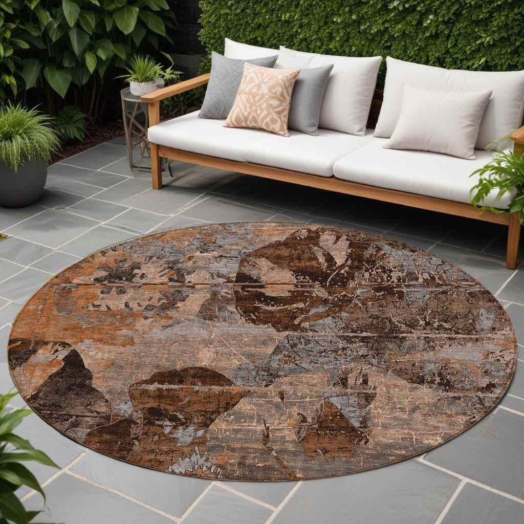 8' Round Brown Terracotta and Gray Round Floral Washable Non Skid Indoor Outdoor Area Rug