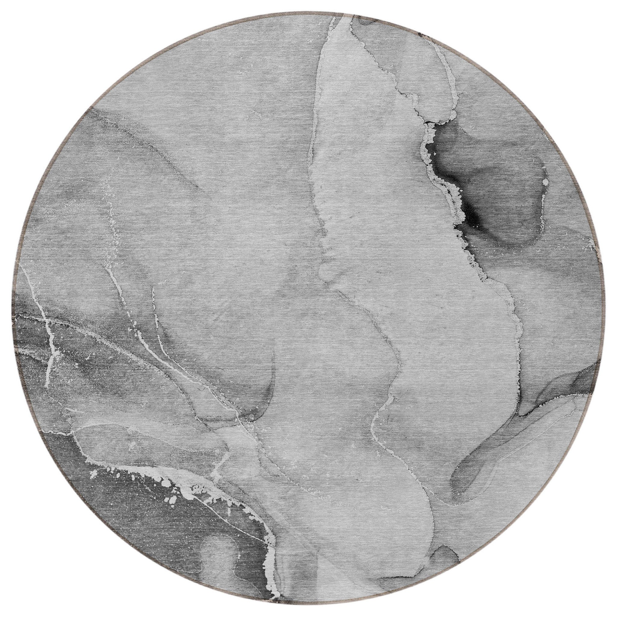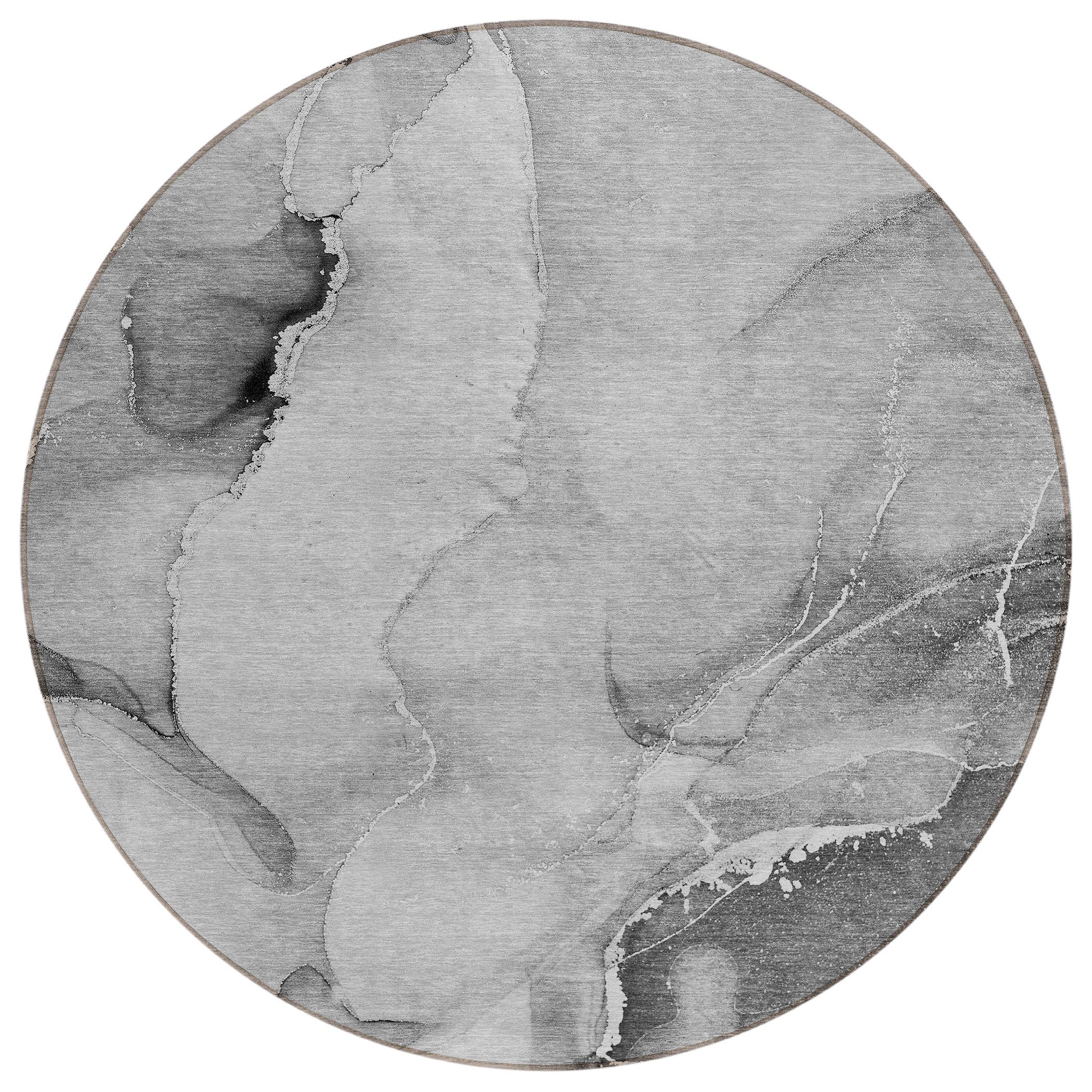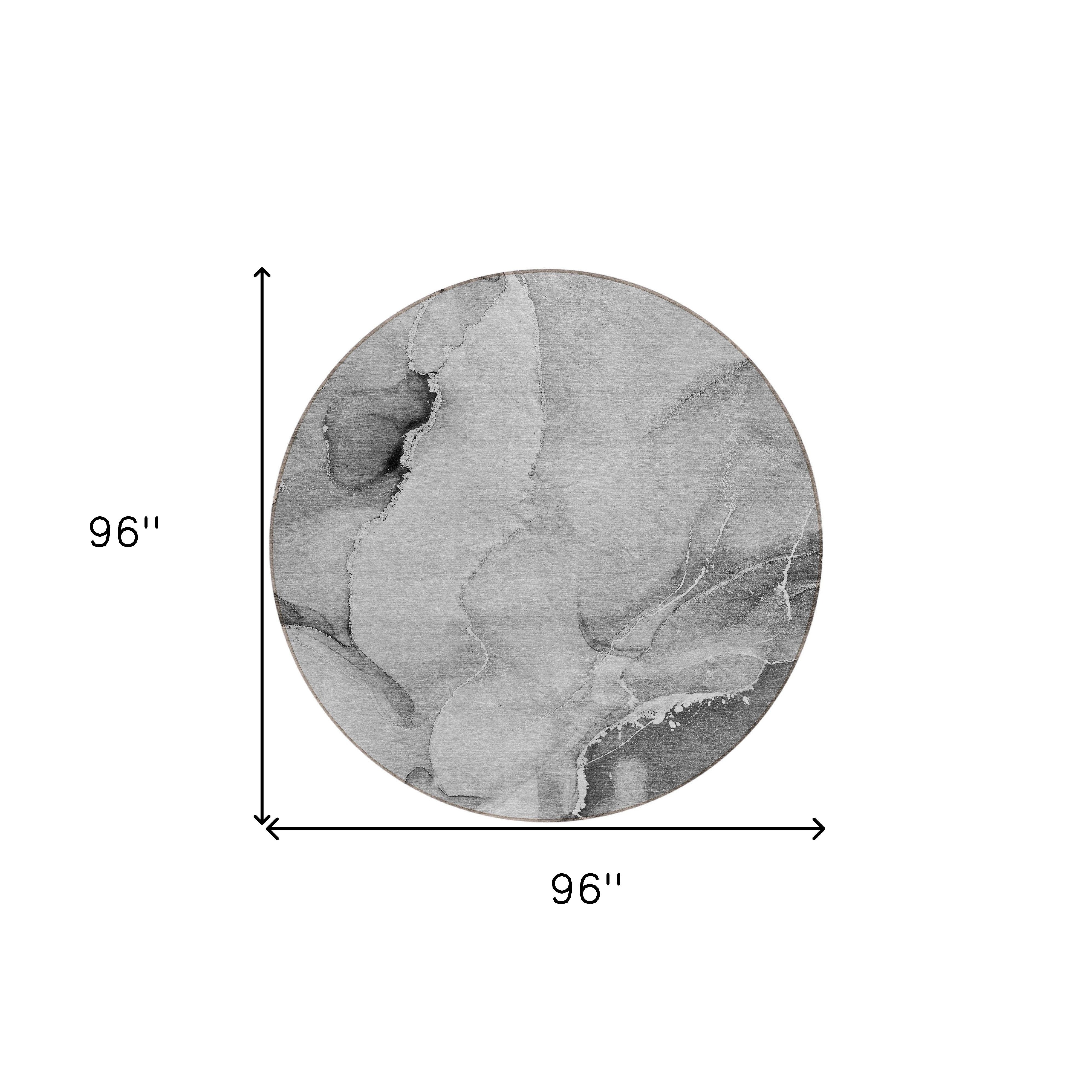 8' Round Gray and Ivory Round Abstract Washable Non Skid Indoor Outdoor Area Rug