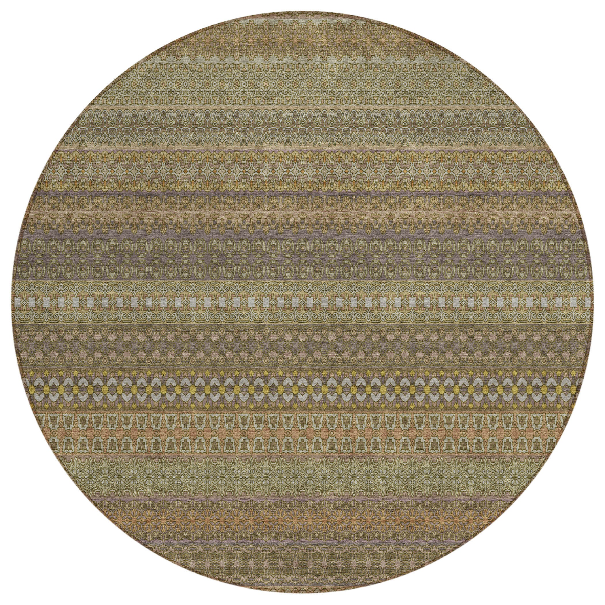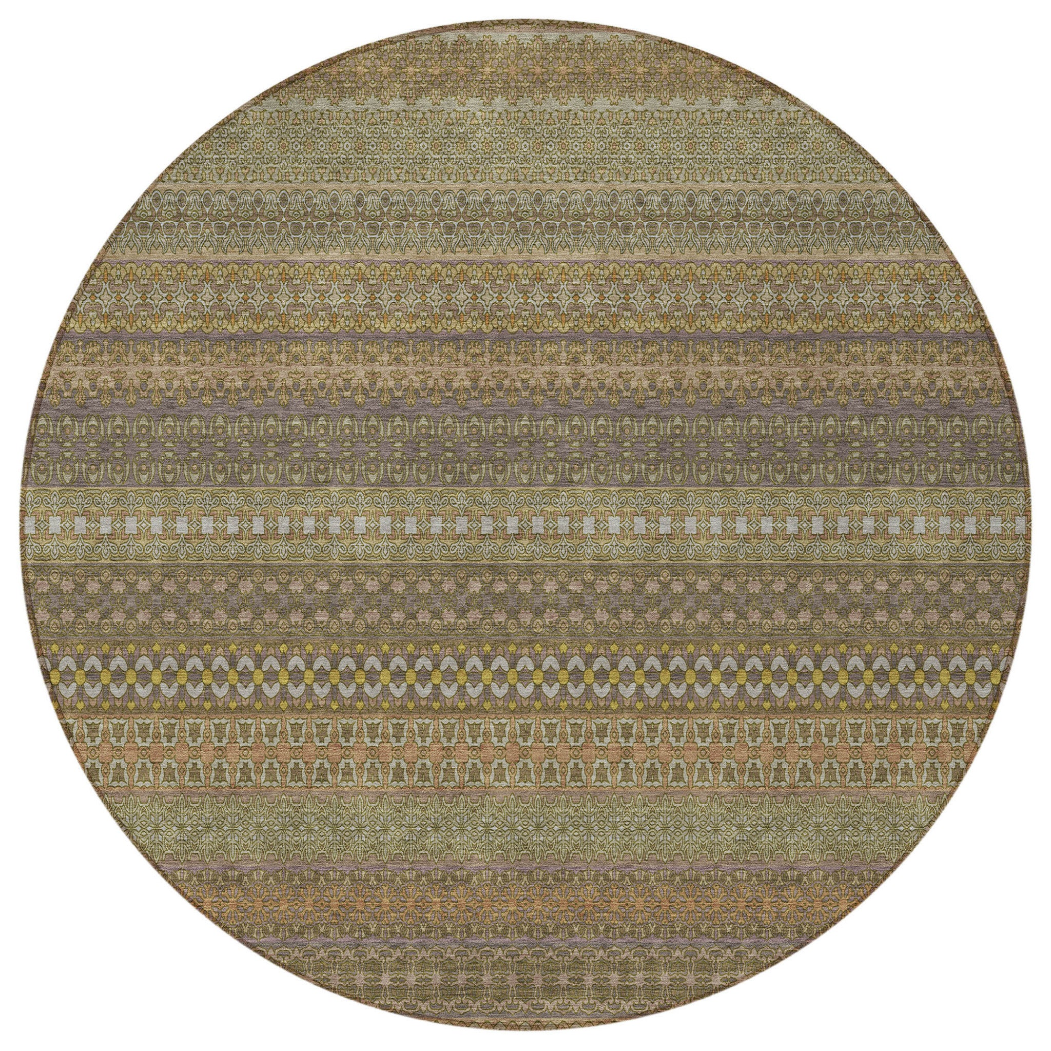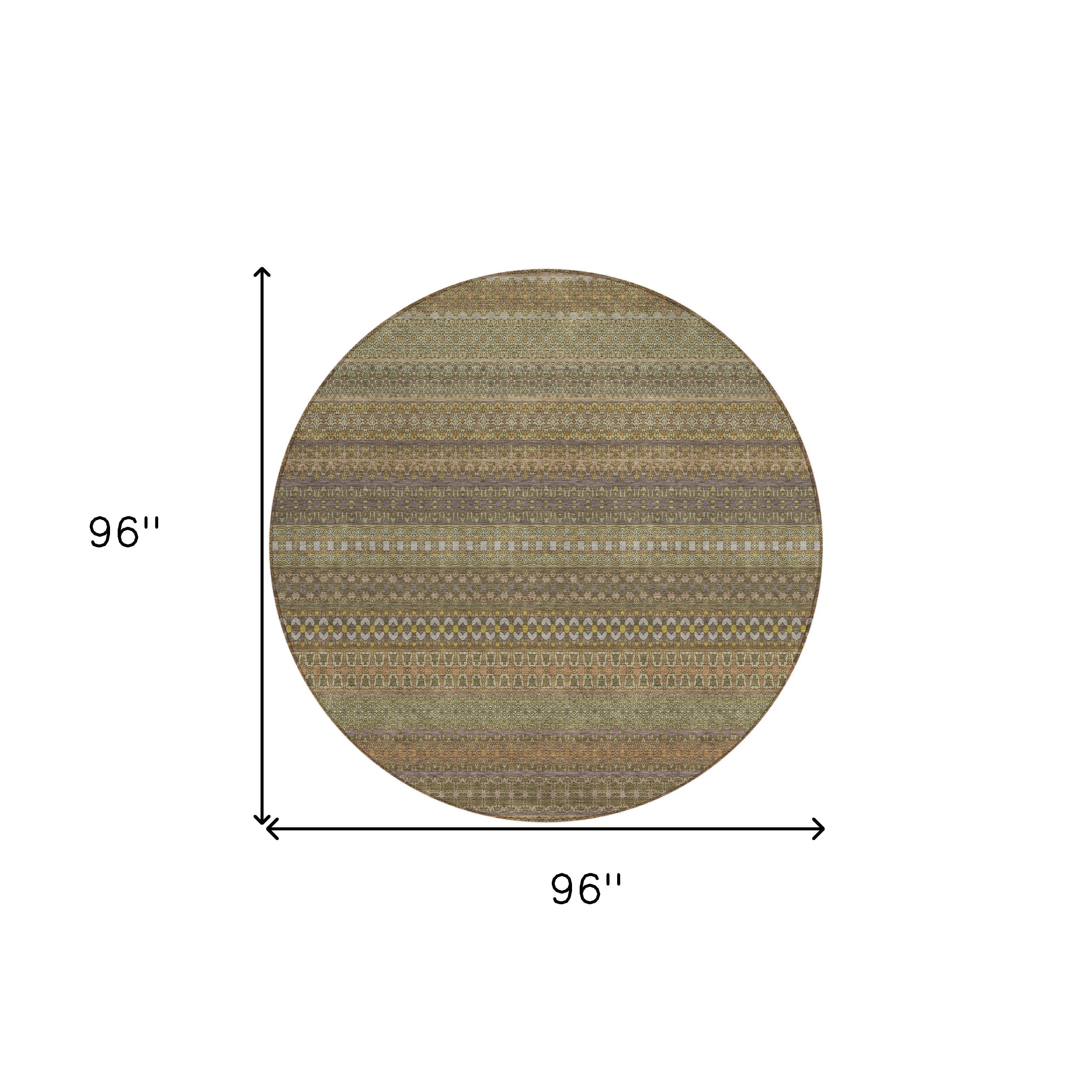 8' Round Khaki Round Striped Washable Non Skid Indoor Outdoor Area Rug