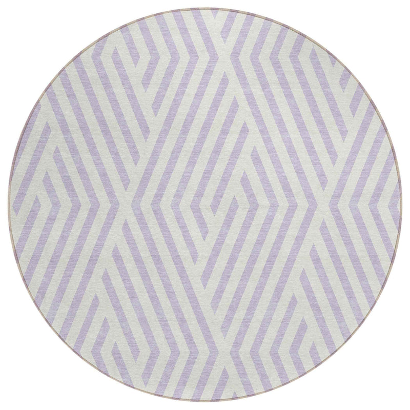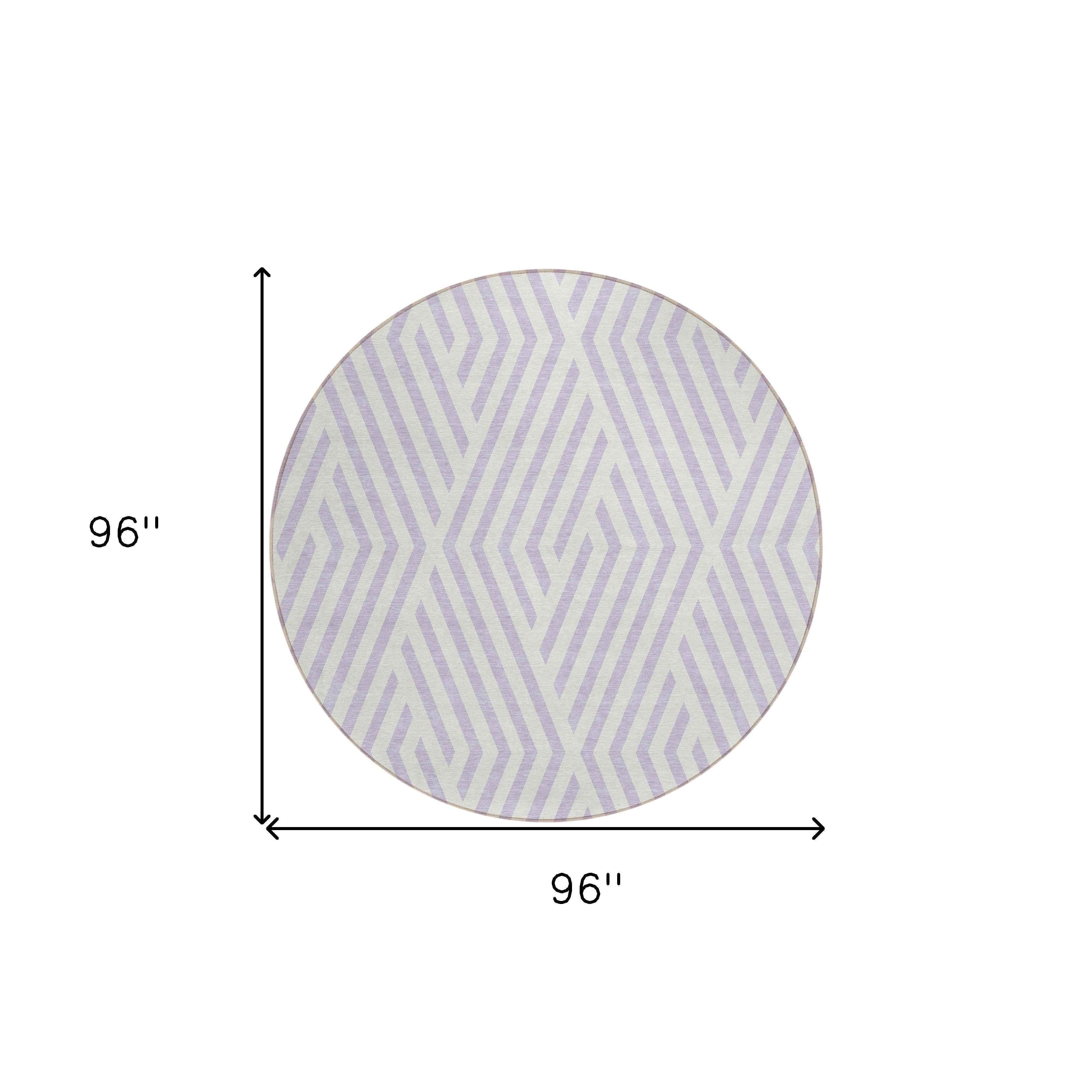 8' Round Lavender and Ivory Round Geometric Washable Non Skid Indoor Outdoor Area Rug