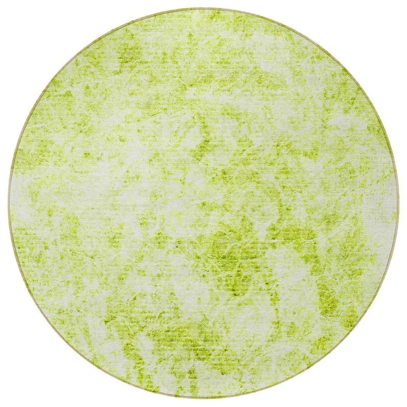 8' Round Lime Green Round Abstract Washable Non Skid Indoor Outdoor Area Rug