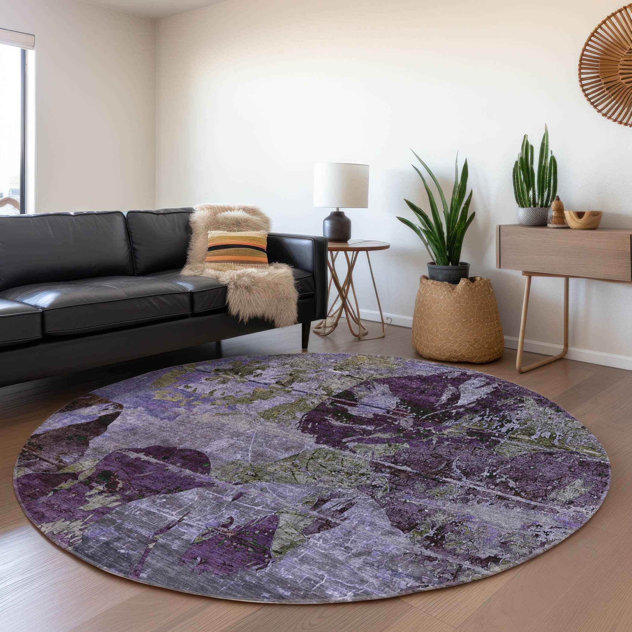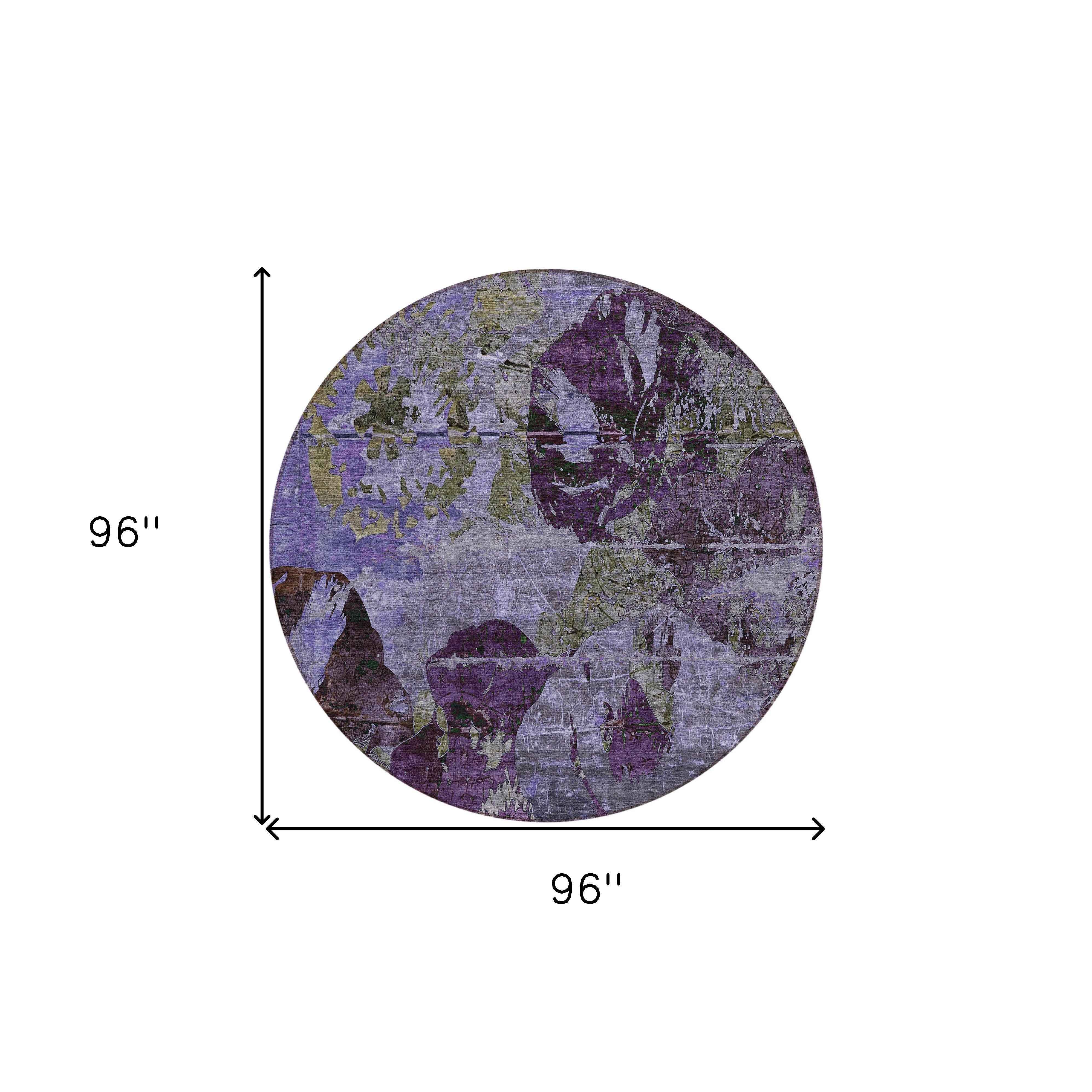 8' Round Purple and Green Round Floral Washable Non Skid Indoor Outdoor Area Rug