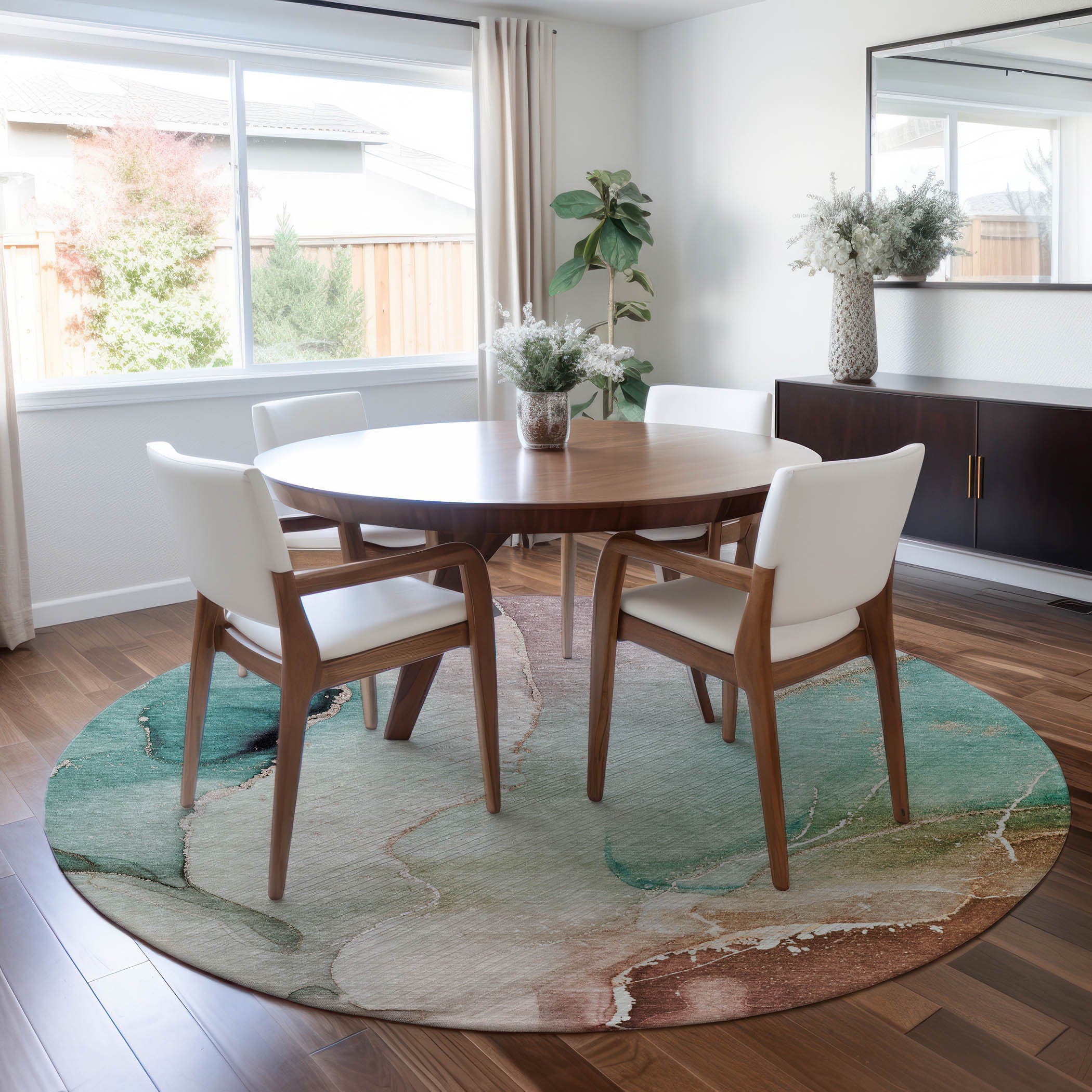 8' Round Teal Round Abstract Washable Non Skid Indoor Outdoor Area Rug