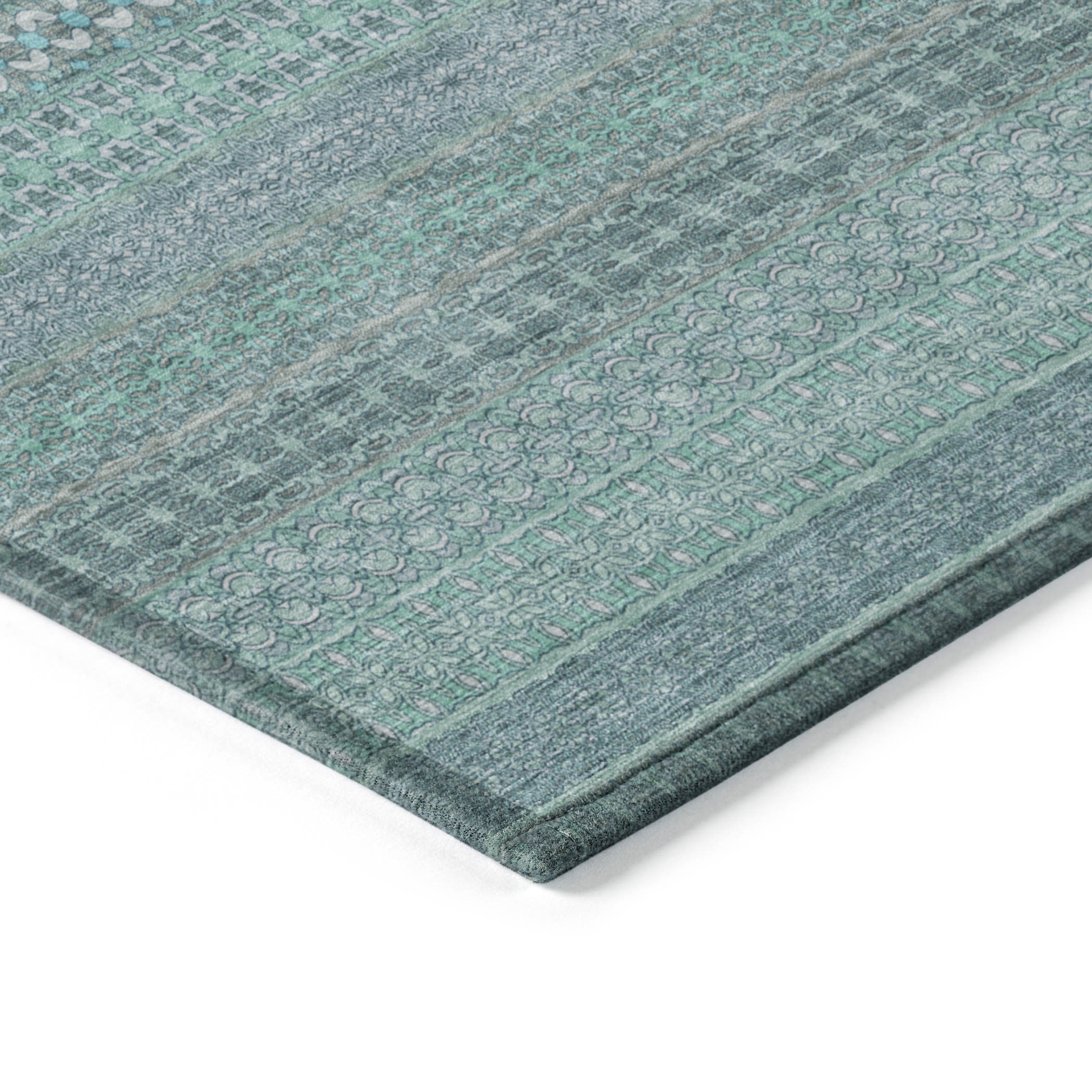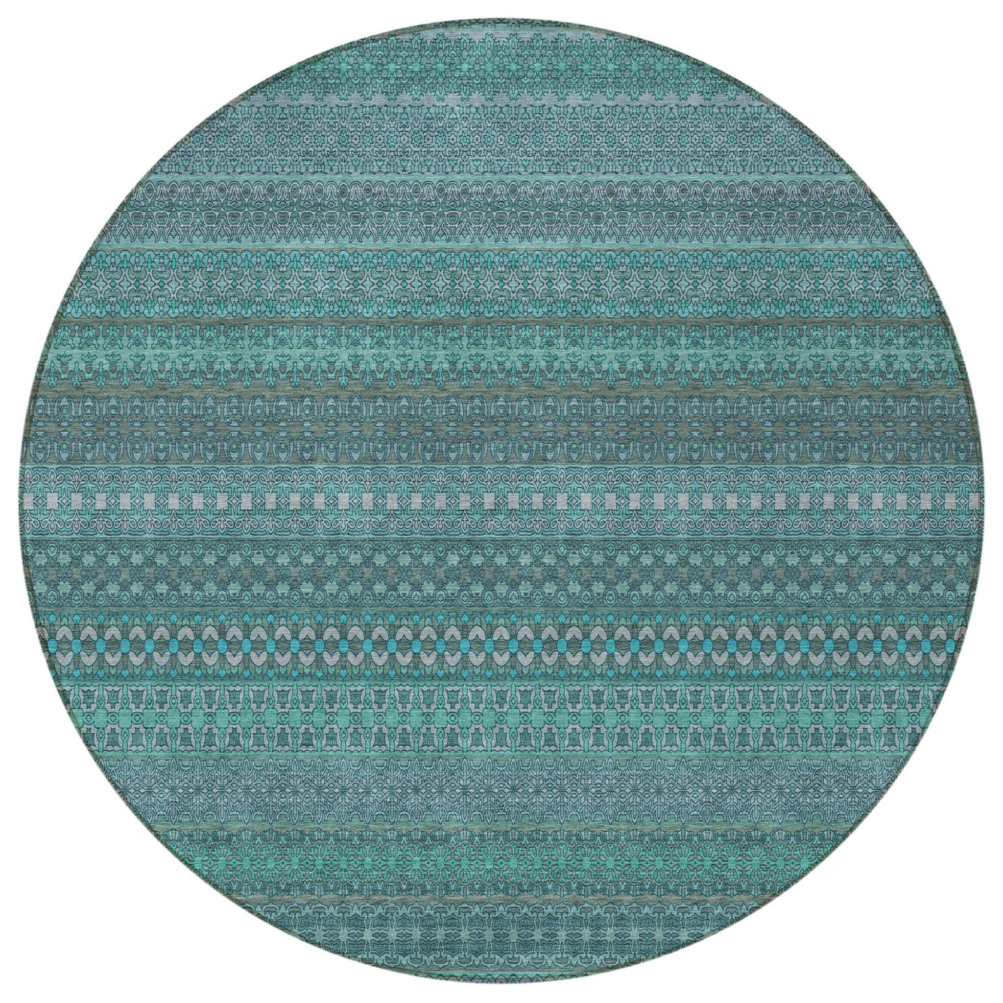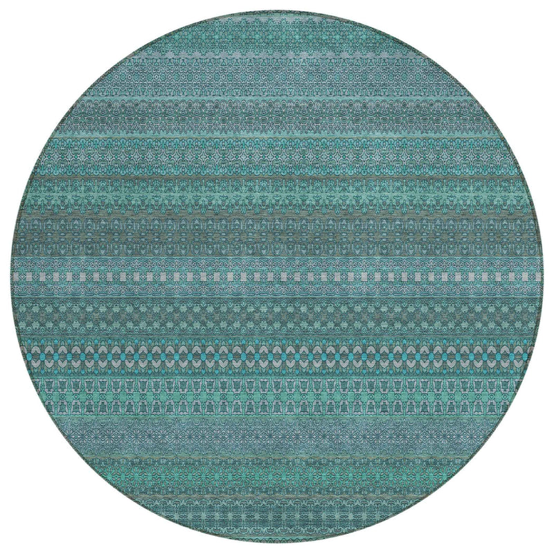 8' Round Turquoise Round Striped Washable Non Skid Indoor Outdoor Area Rug
