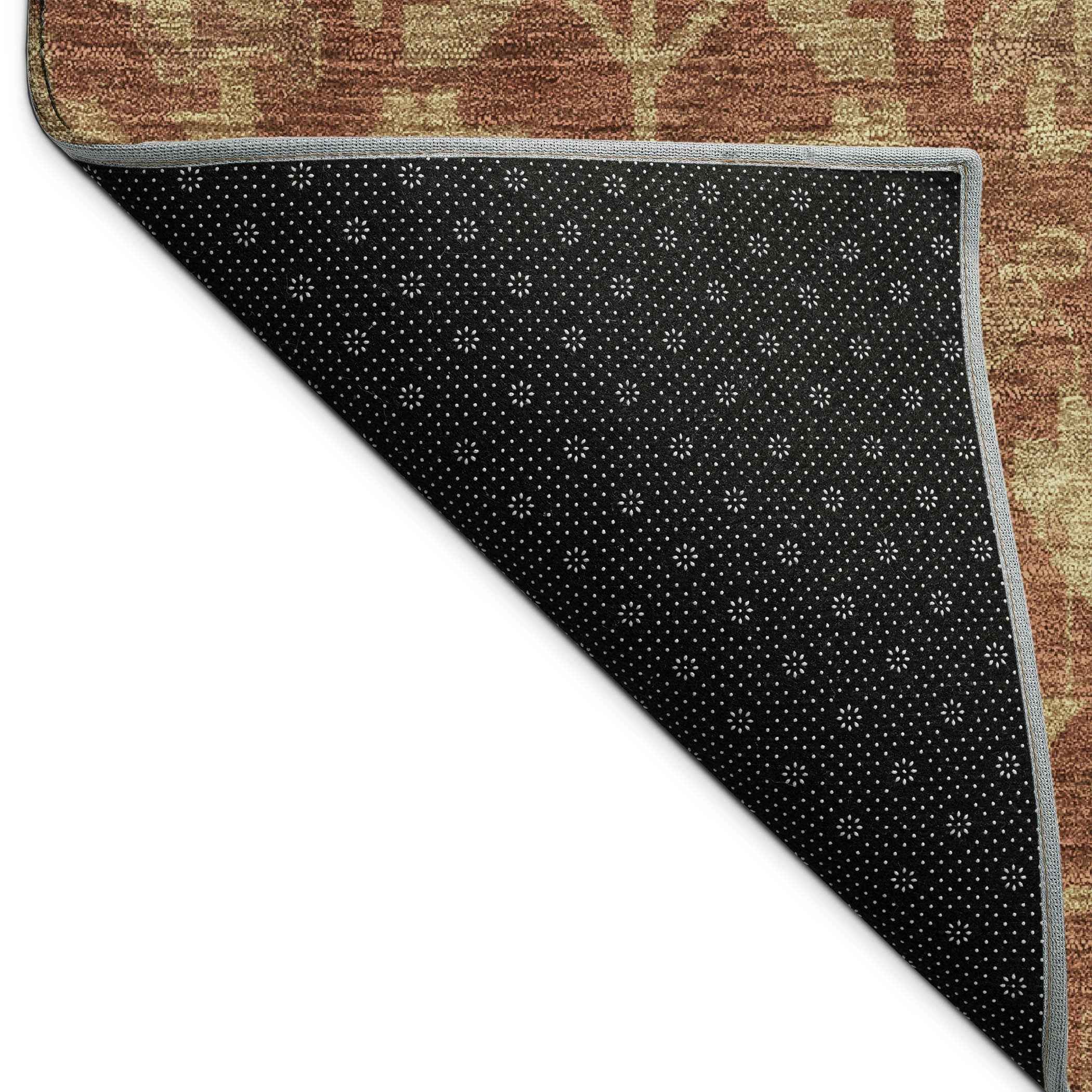 Add great coloration and comfortable texture to your space with this 8-foot rust and beige round floral washable indoor outdoor area rug. This geometric round shaped rug features a floral pattern in rust and beige that combines a good looking print with a unique and updated shape. The mix of shape, color, and design gives this rug refreshing visual interest. Ideal for outdoor spaces or high traffic areas with kids and pets, this rug is made from heavy duty polyester that is stain resistant to help repel water, dirt, and stains. Makes a great way to dress up your patio, porch, or poolside, but also works well as a durable and easy to maintain option in the kitchen, family room, or mudroom. 96.00-inch h x 96.00-inch w x 0.19-inch d.