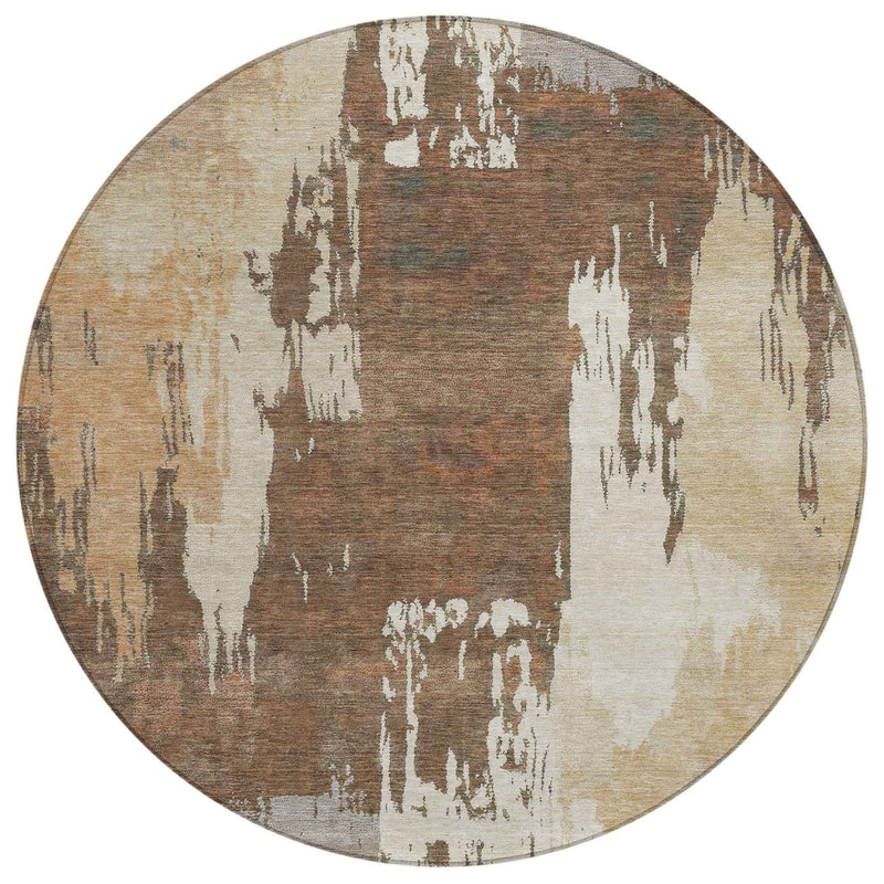 Add some artistry to your room with this 8-foot rust ivory and gray round abstract washable indoor outdoor area rug. This geometric round shaped rug features a abstract pattern in rust, ivory, and gray that combines a good looking print with a unique and updated shape. The mix of shape, color, and design gives this rug refreshing visual interest. Ideal for outdoor spaces or high traffic areas with kids and pets, this rug is made from heavy duty polyester that is stain resistant to help repel water, dirt, and stains. Makes a great way to dress up your patio, porch, or poolside, but also works well as a durable and easy to maintain option in the kitchen, family room, or mudroom. 96.00-inch h x 96.00-inch w x 0.19-inch d.