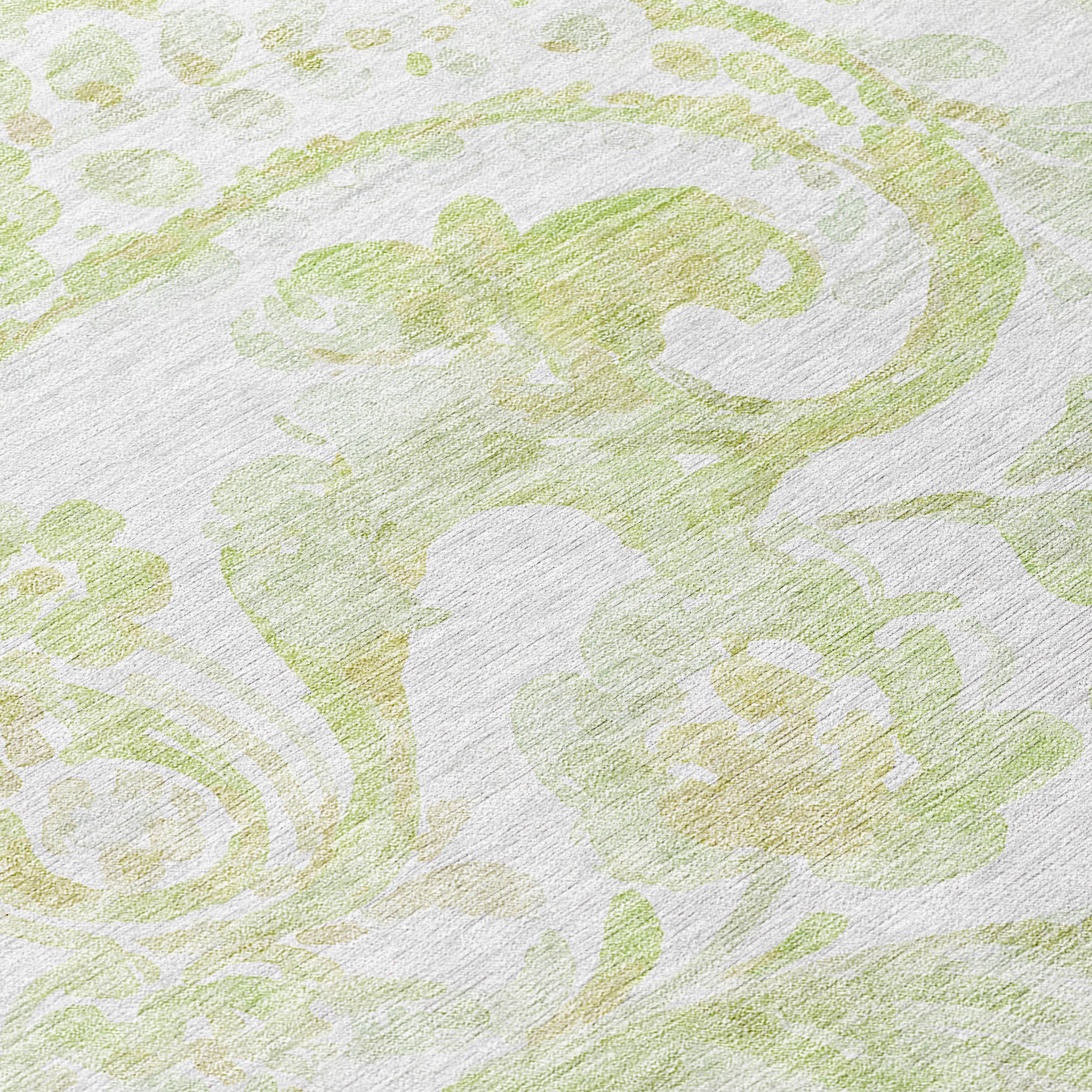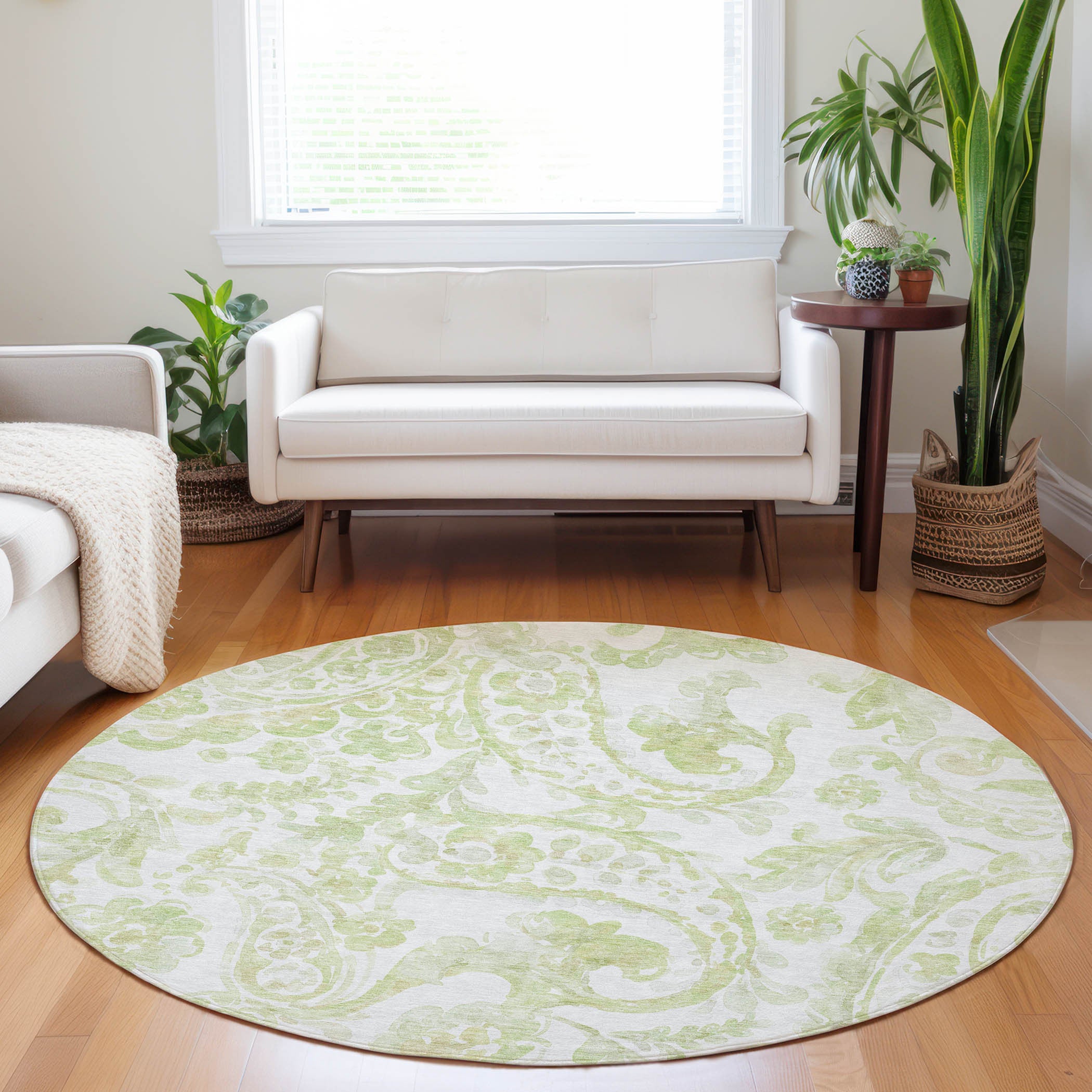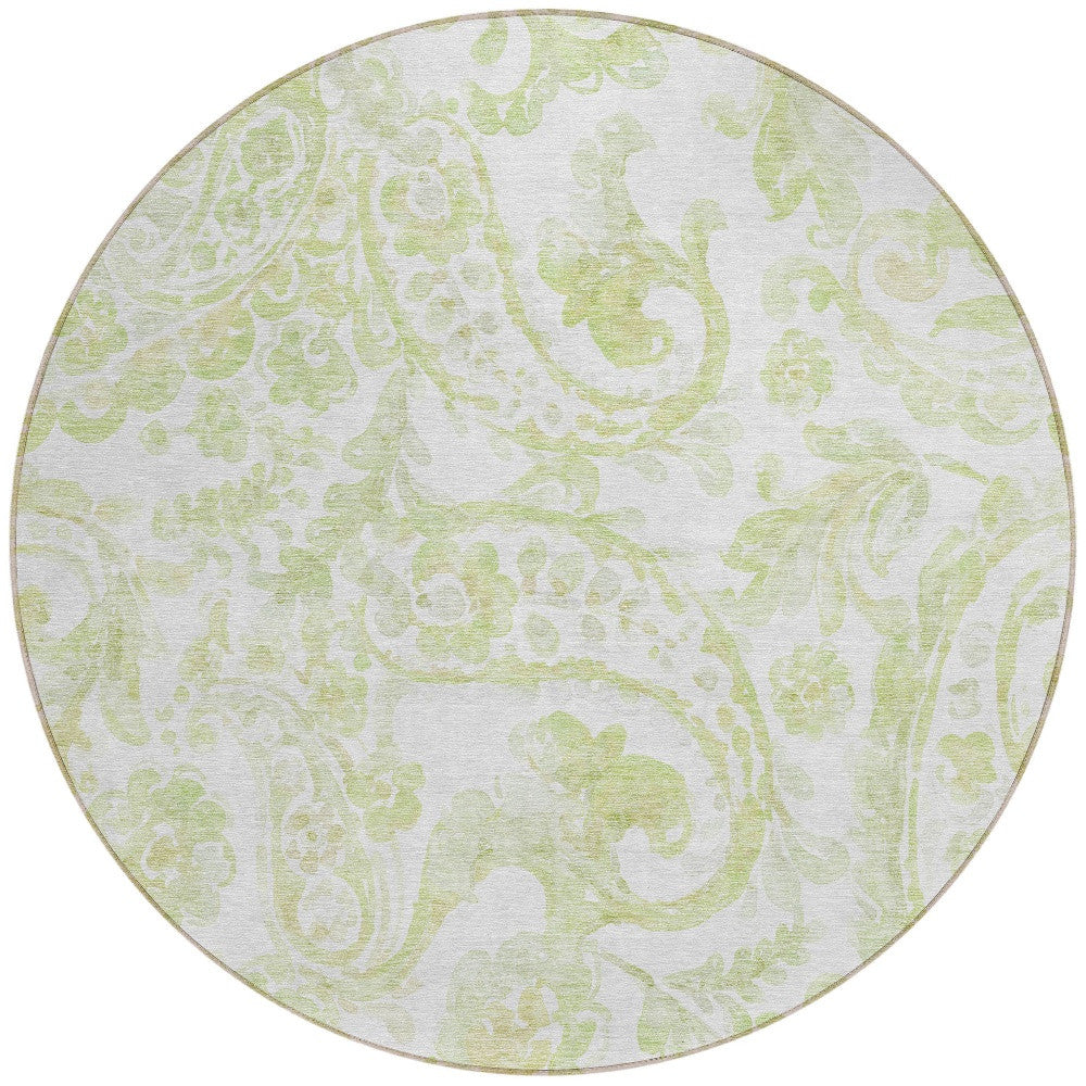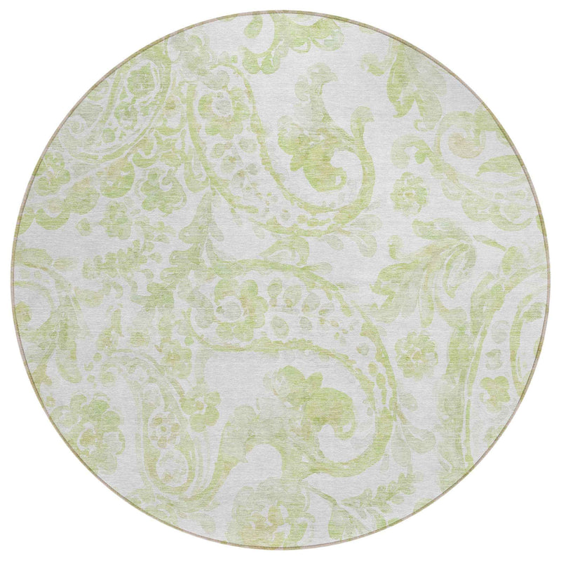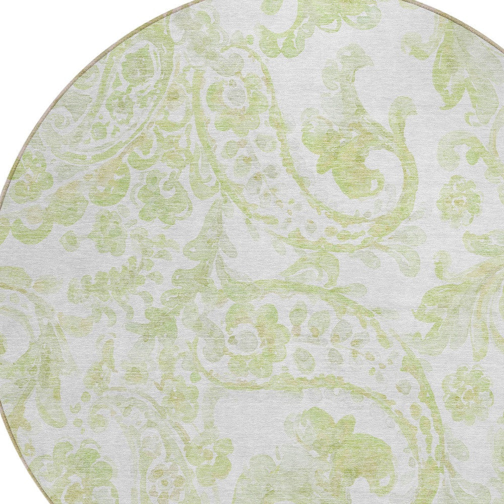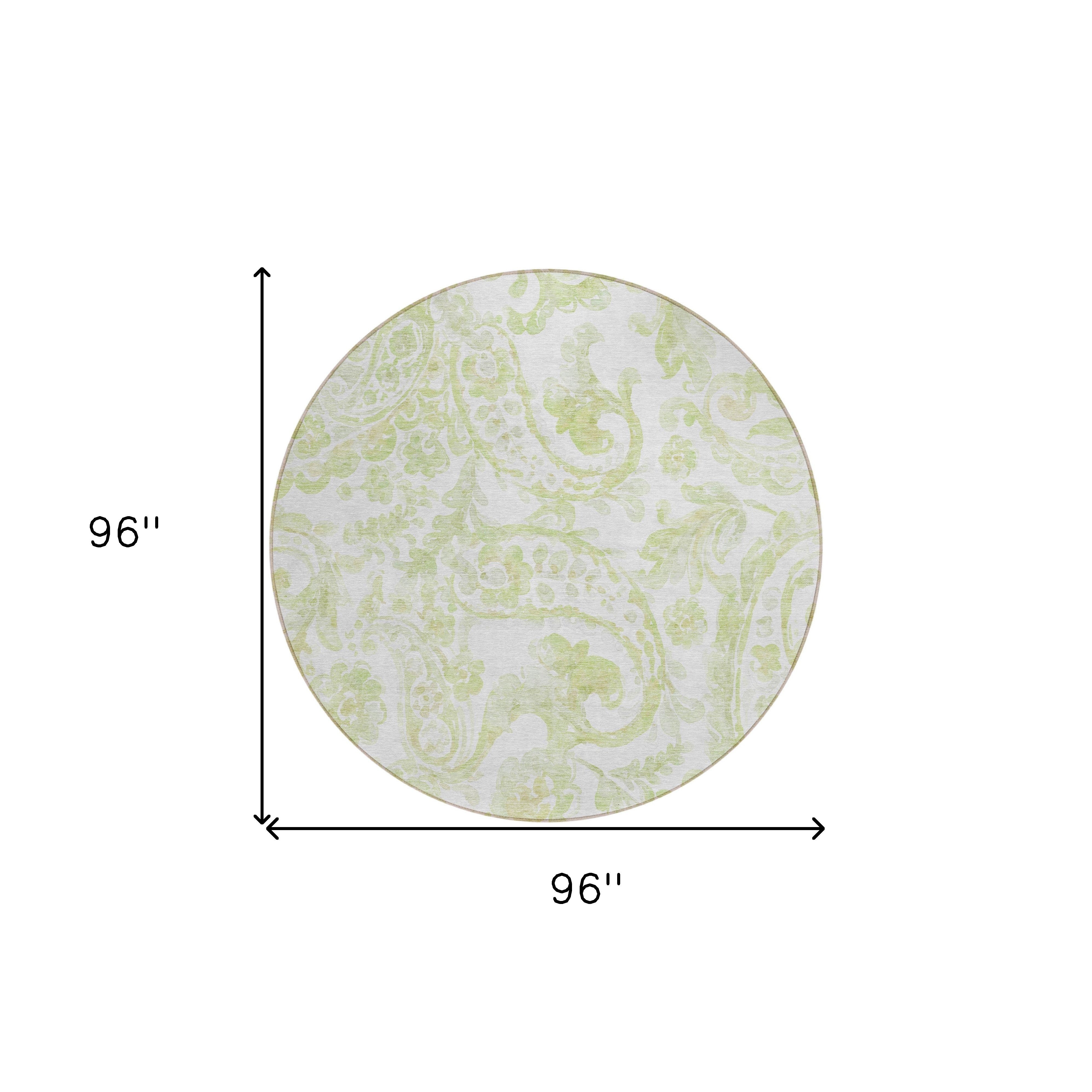 8' Sage Green And Ivory Round Paisley Washable Indoor Outdoor Area Rug