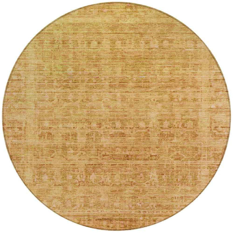 8' Salmon And Gold Round Abstract Washable Indoor Outdoor Area Rug