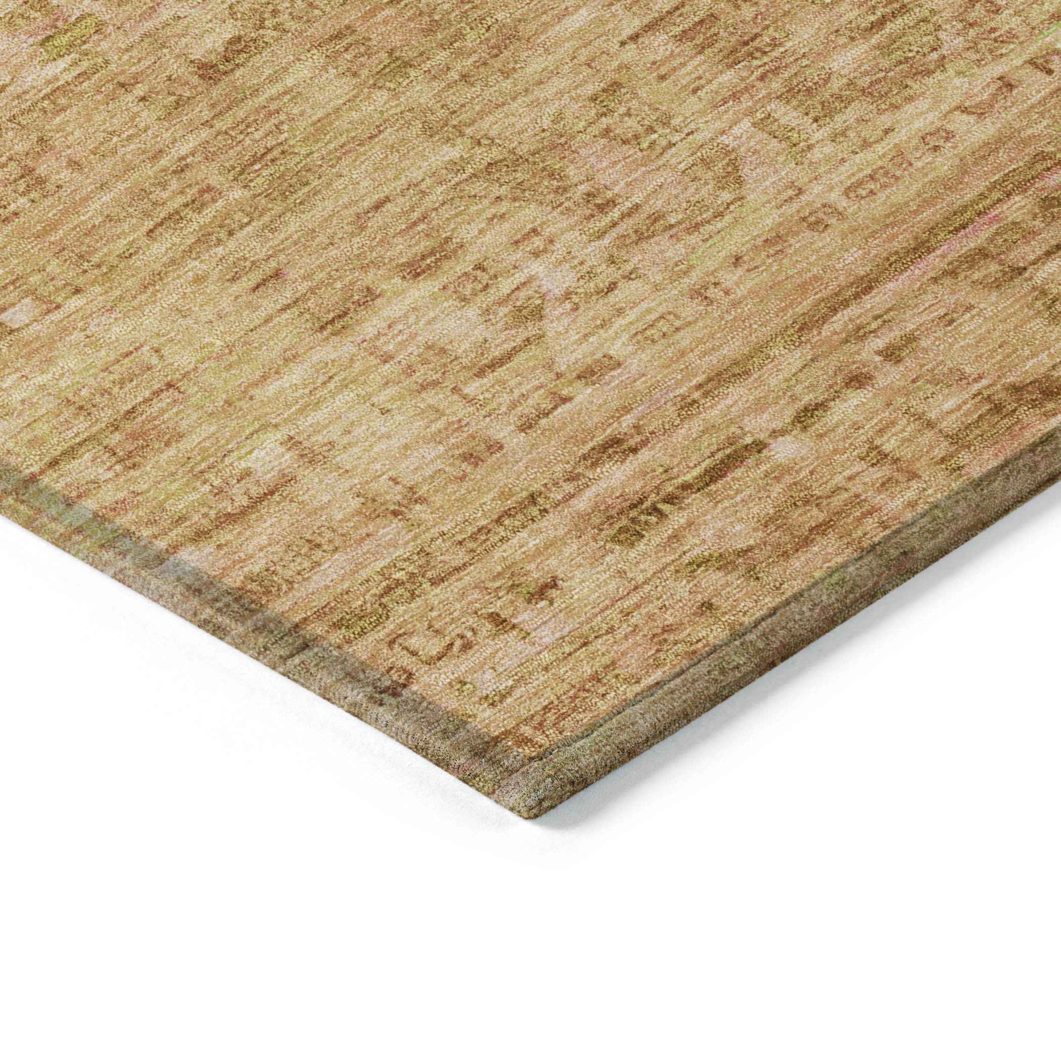 Add some artistry to your room with this 8-foot salmon and gold round abstract washable indoor outdoor area rug. This geometric round shaped rug features a abstract pattern in salmon and gold that combines a good looking print with a unique and updated shape. The mix of shape, color, and design gives this rug refreshing visual interest. Ideal for outdoor spaces or high traffic areas with kids and pets, this rug is made from heavy duty polyester that is stain resistant to help repel water, dirt, and stains. Makes a great way to dress up your patio, porch, or poolside, but also works well as a durable and easy to maintain option in the kitchen, family room, or mudroom. 96-inch h x 96-inch w x 0.19-inch d.