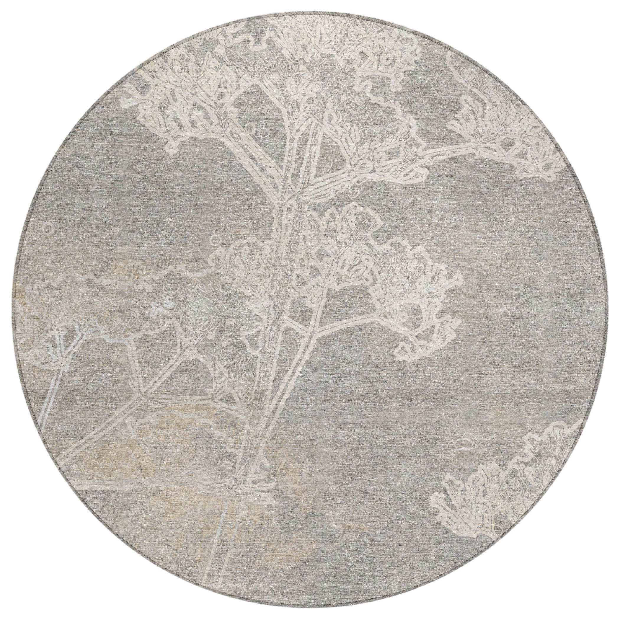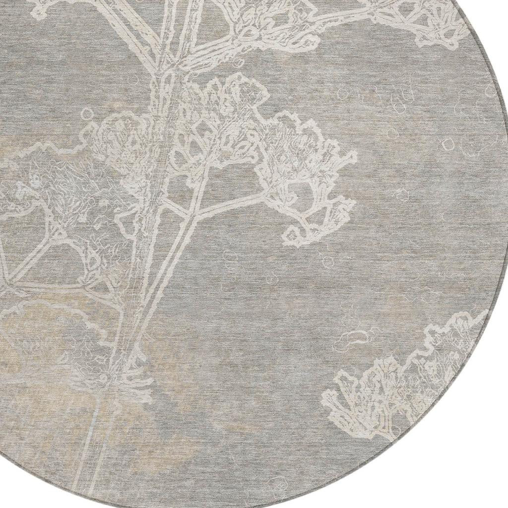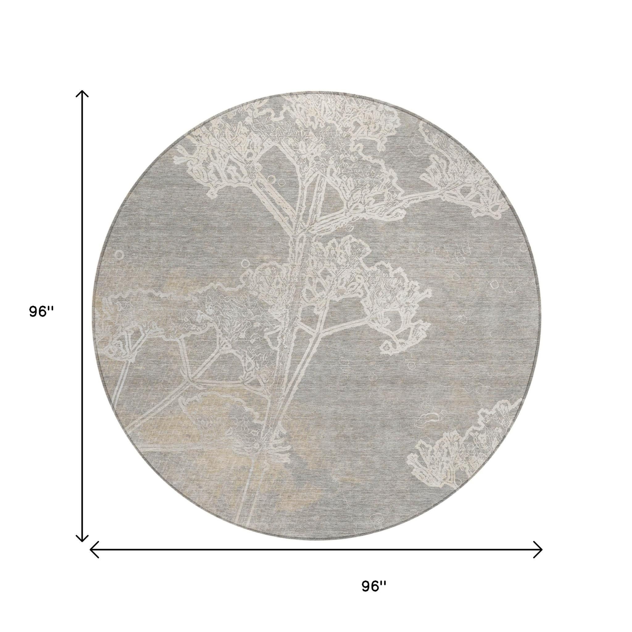 8' Silver And Gray Round Floral Washable Indoor Outdoor Area Rug