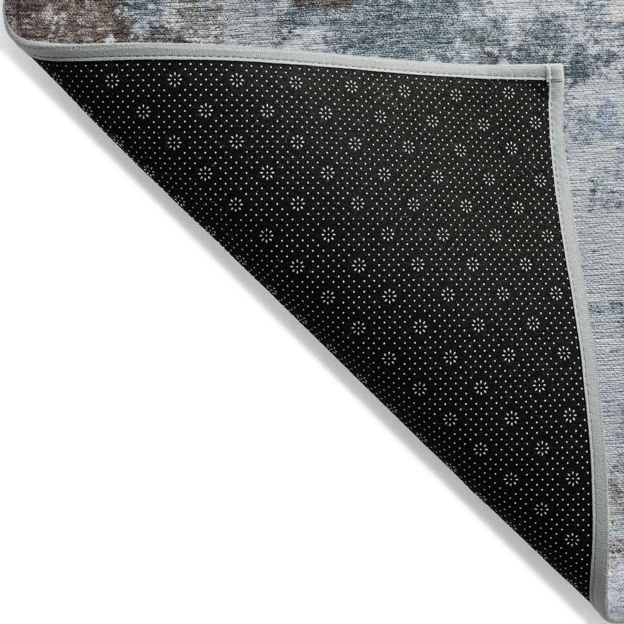 This 8-foot sky blue and brown round abstract washable indoor outdoor area rug, is a great way to add warmth to a room. This geometric round shaped rug features a abstract pattern in sky blue and brown that combines a good looking print with a unique and updated shape. The mix of shape, color, and design gives this rug refreshing visual interest. Ideal for outdoor spaces or high traffic areas with kids and pets, this rug is made from heavy duty polyester that is stain resistant to help repel water, dirt, and stains. Versatile in use, durable, and easy to maintain, this rug is an ideal solution to add a decorative and inviting touch to your indoor or outdoor space. 96-inch h x 96-inch w x 0.19-inch d.