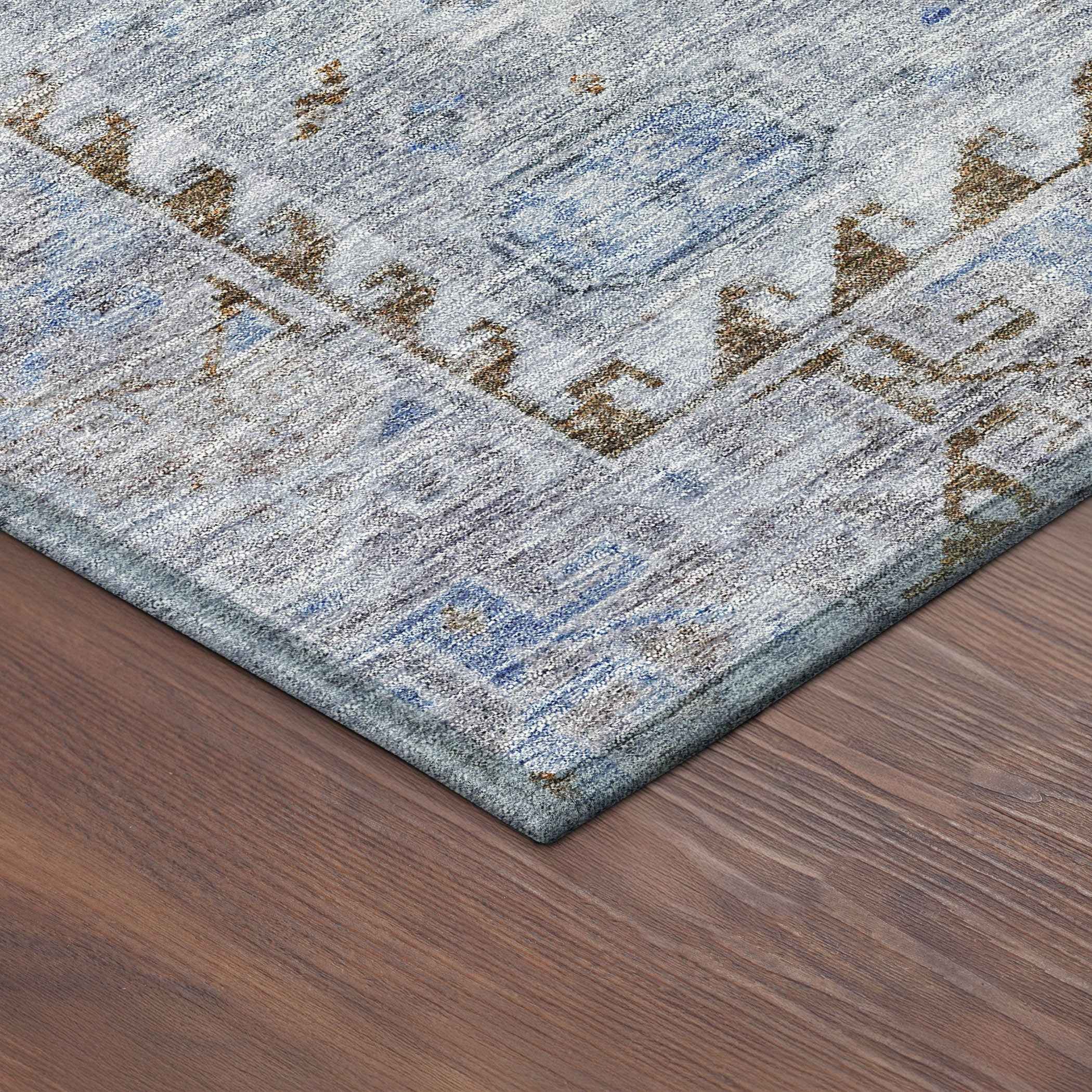 Set an inviting tone in your space with this 8-foot sky blue and brown round medallion washable indoor outdoor area rug. This geometric round shaped rug features a medallion pattern in sky blue and brown that combines a good looking print with a unique and updated shape. The mix of shape, color, and design gives this rug refreshing visual interest. Ideal for outdoor spaces or high traffic areas with kids and pets, this rug is made from heavy duty polyester that is stain resistant to help repel water, dirt, and stains. Makes a great way to dress up your patio, porch, or poolside, but also works well as a durable and easy to maintain option in the kitchen, family room, or mudroom. 96.00-inch h x 96.00-inch w x 0.19-inch d.