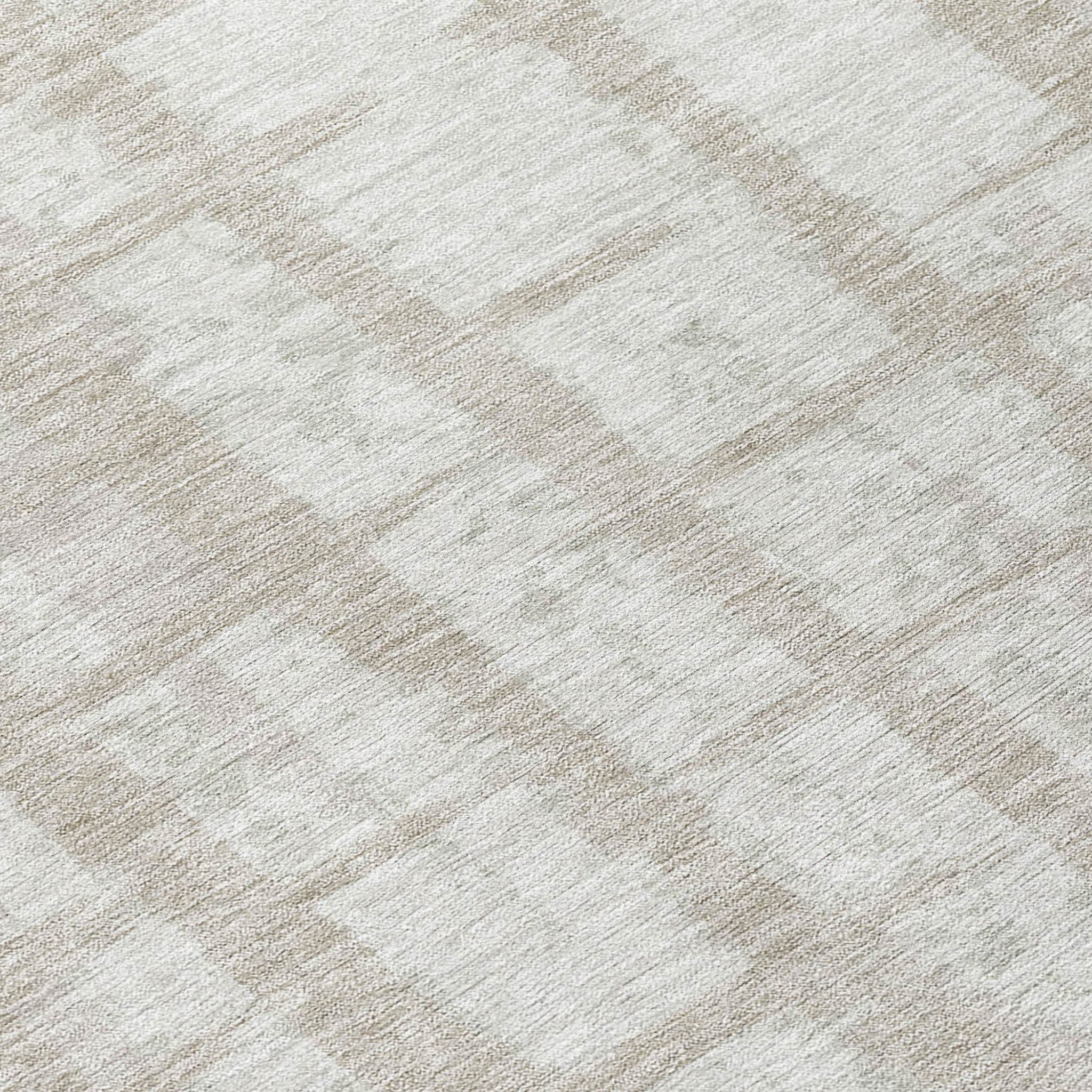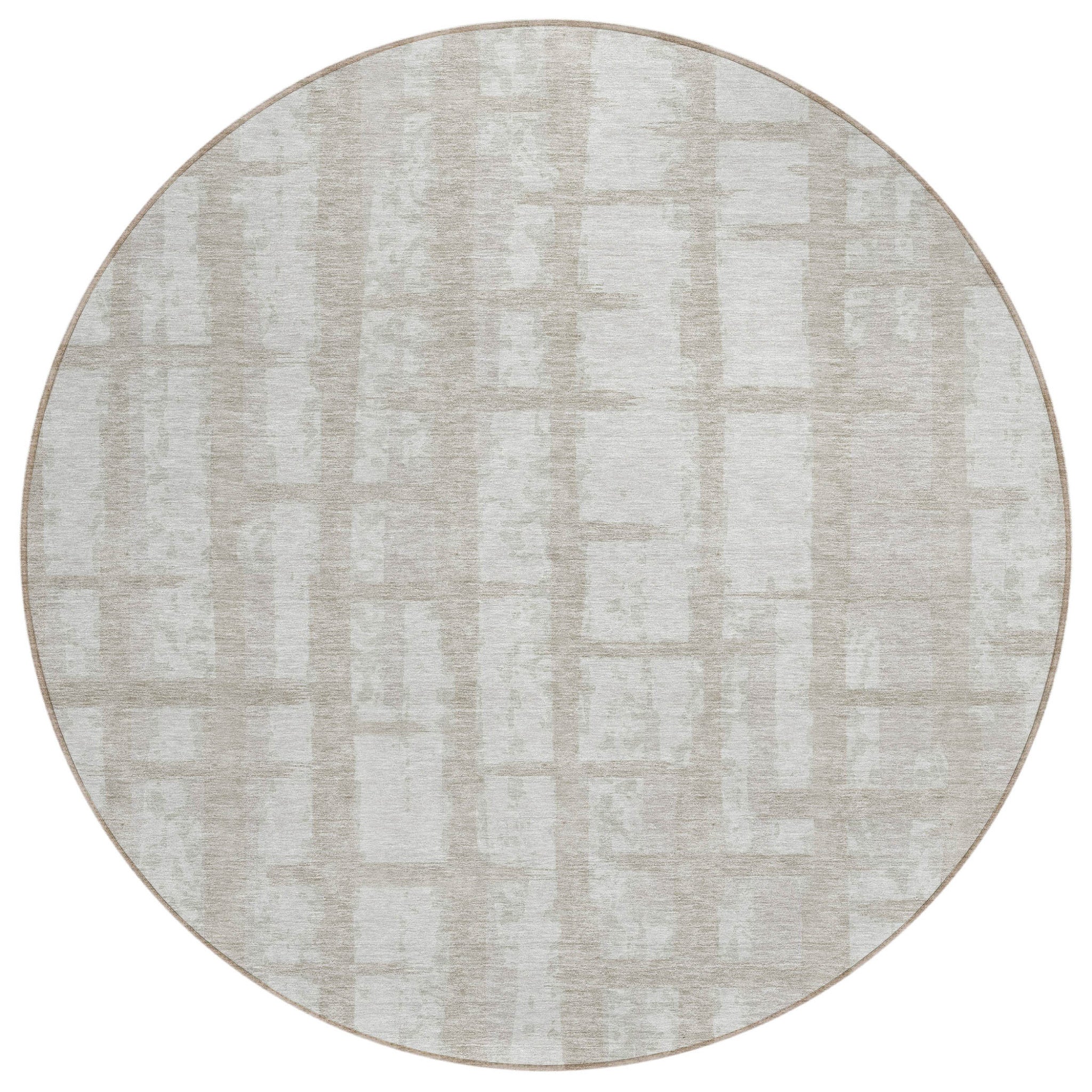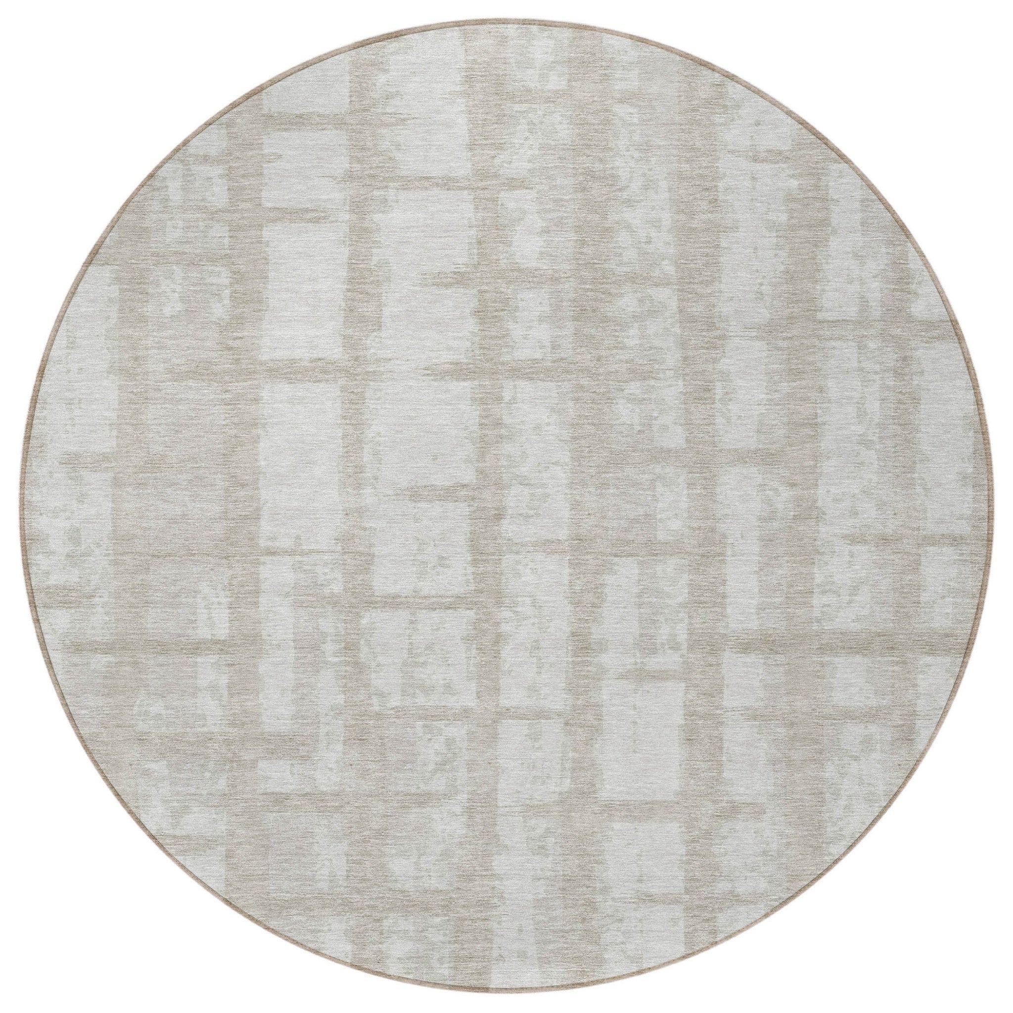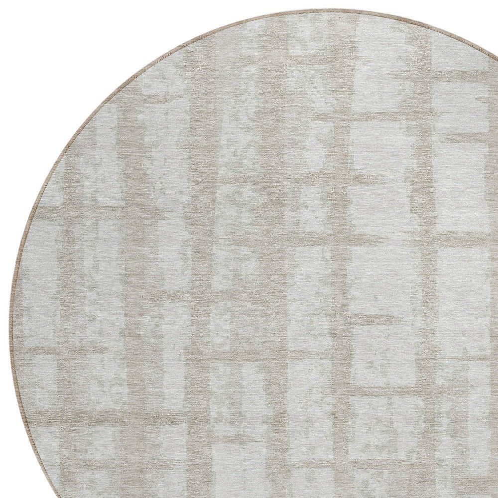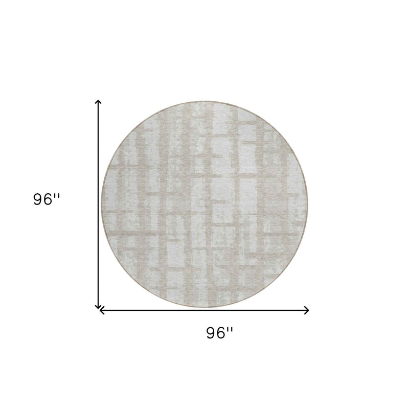 8' Taupe And Beige Round Striped Washable Indoor Outdoor Area Rug