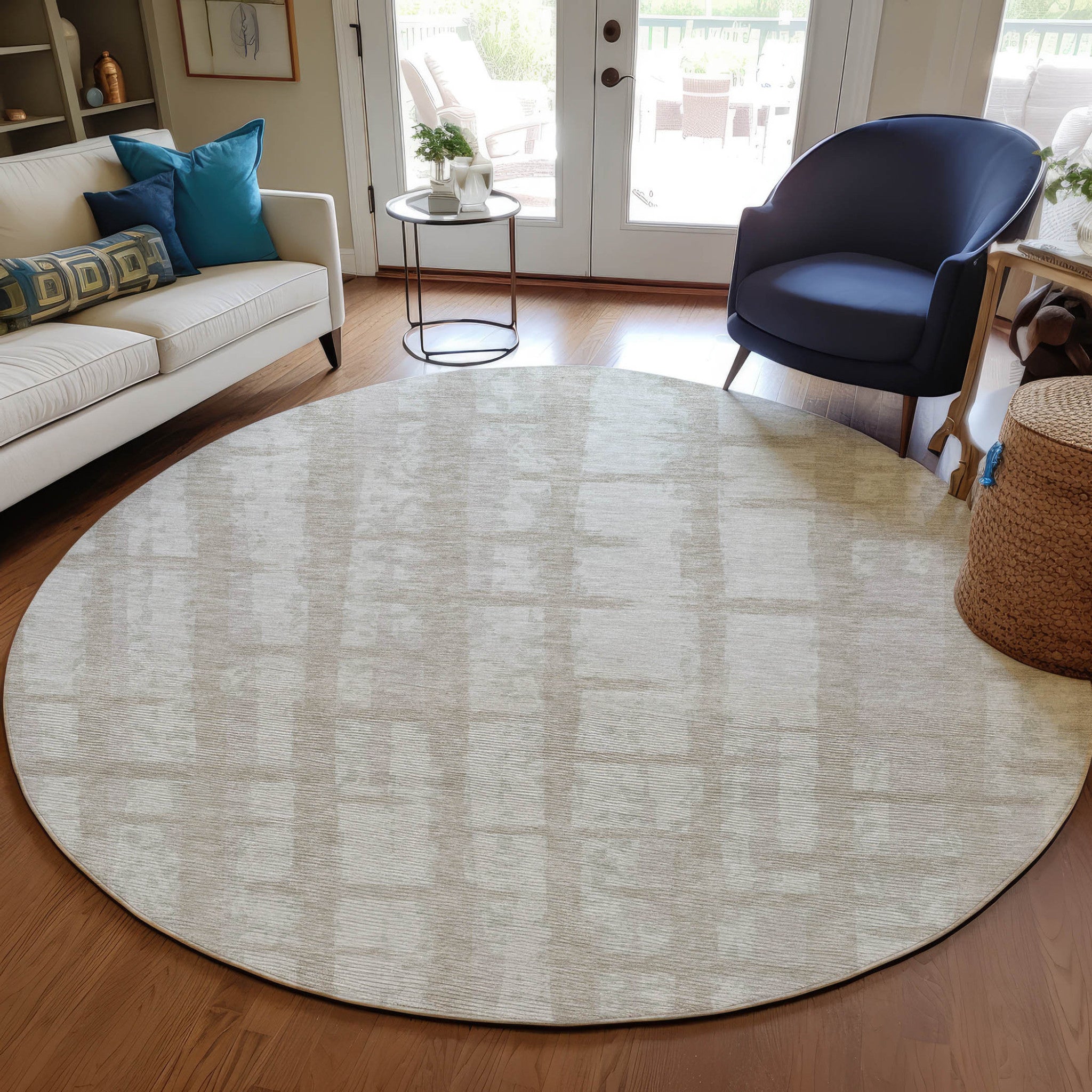 Add great coloration and comfortable texture to your space with this 8-foot taupe and beige round striped washable indoor outdoor area rug. This geometric round shaped rug features a striped pattern in taupe and beige that combines a good looking print with a unique and updated shape. The mix of shape, color, and design gives this rug refreshing visual interest. Ideal for outdoor spaces or high traffic areas with kids and pets, this rug is made from heavy duty polyester that is stain resistant to help repel water, dirt, and stains. Versatile in use, durable, and easy to maintain, this rug is an ideal solution to add a decorative and inviting touch to your indoor or outdoor space. 96-inch h x 96-inch w x 0.19-inch d.