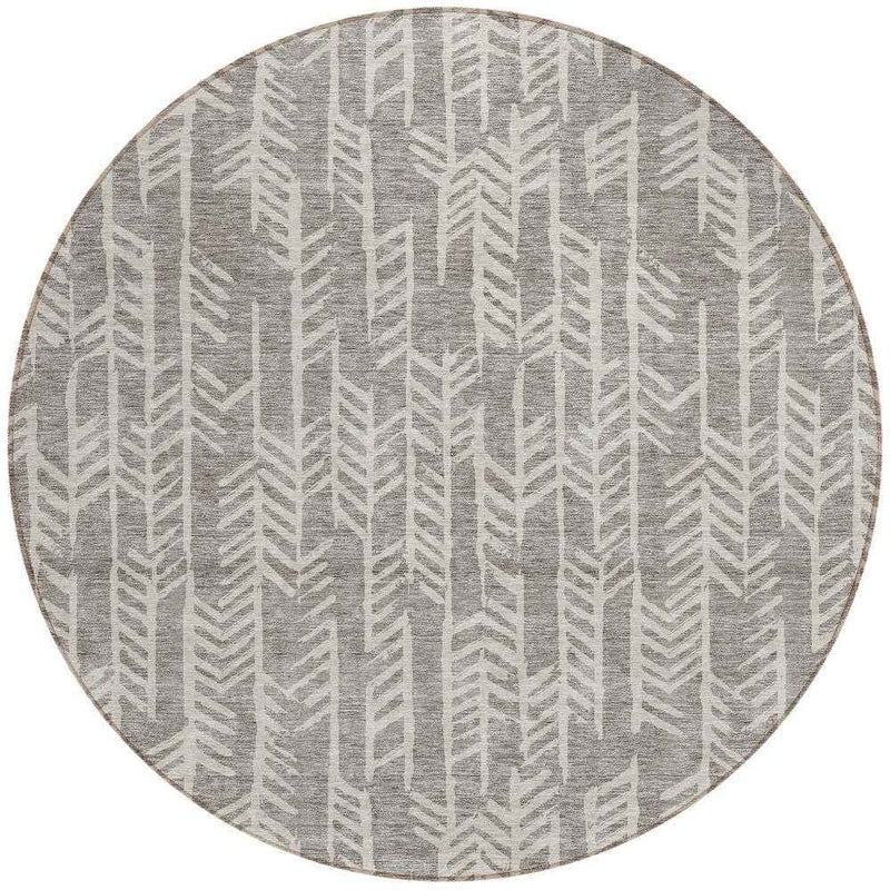 8' Taupe And Beige Round Tribal Washable Indoor Outdoor Area Rug
