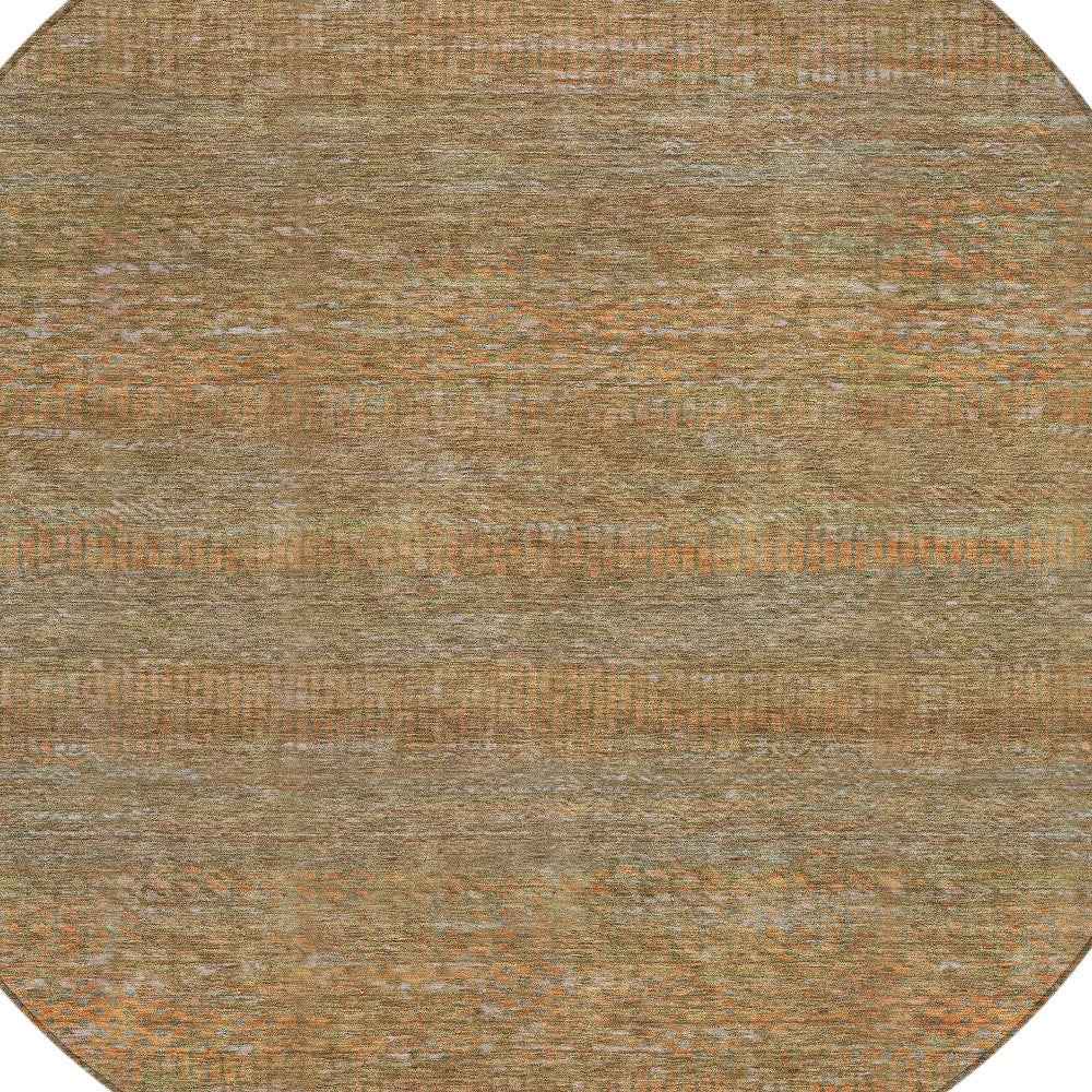 8' Taupe And Brown Round Striped Washable Indoor Outdoor Area Rug