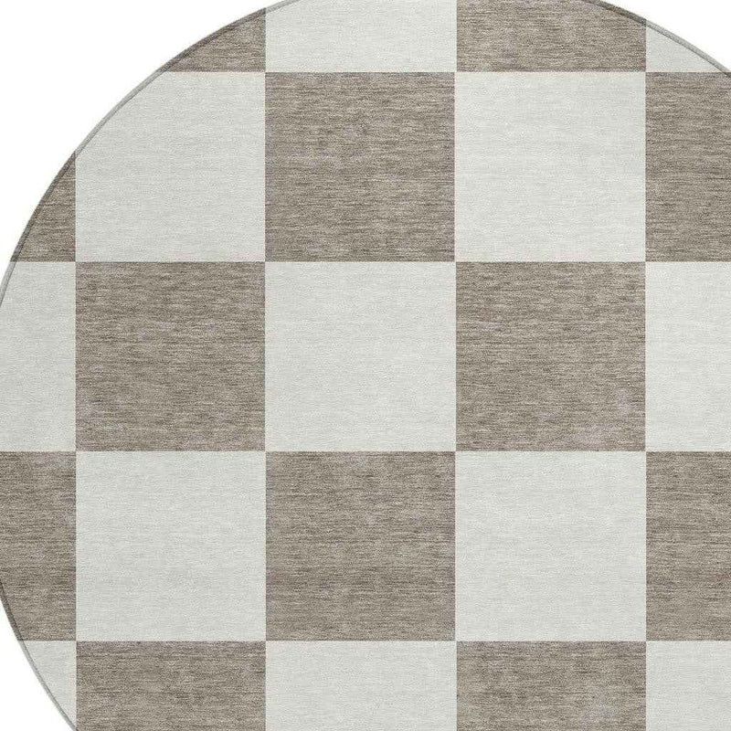 8' Taupe And Ivory Round Geometric Washable Indoor Outdoor Area Rug