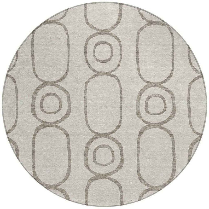 8' Taupe Beige And Ivory Round Geometric Washable Indoor Outdoor Area Rug