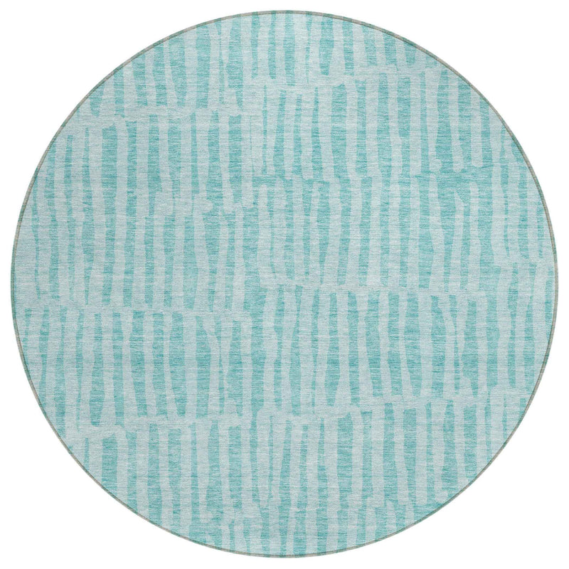 8' Teal Blue And Aqua Round Striped Washable Indoor Outdoor Area Rug
