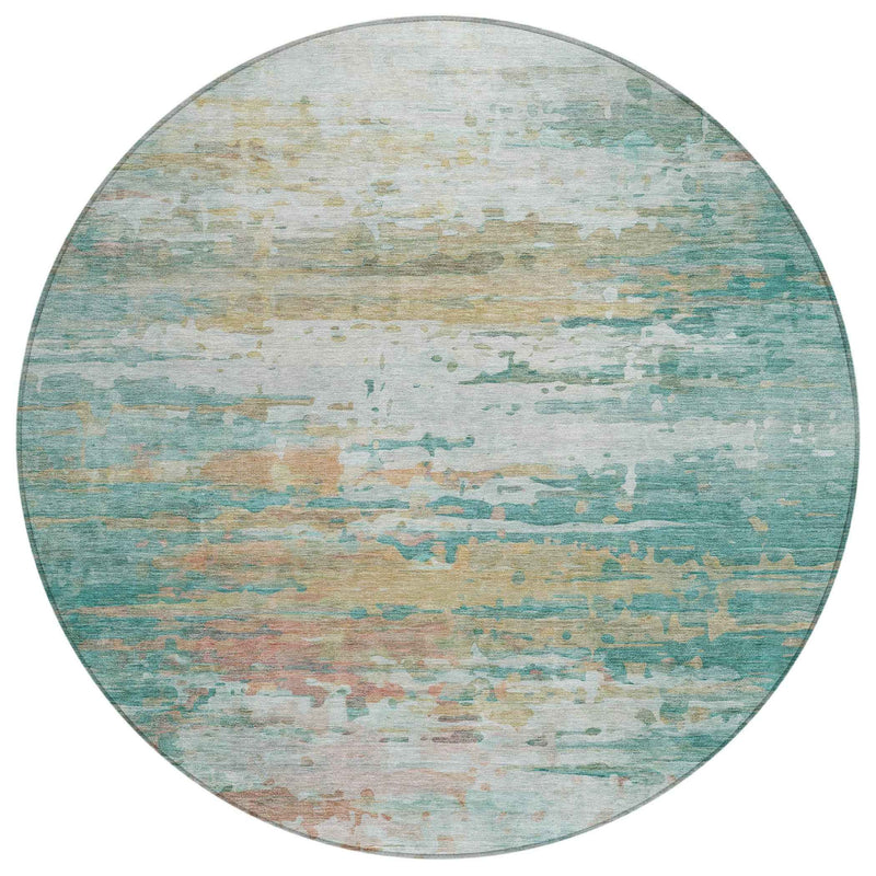 8' Teal Blue And Beige Round Abstract Washable Indoor Outdoor Area Rug