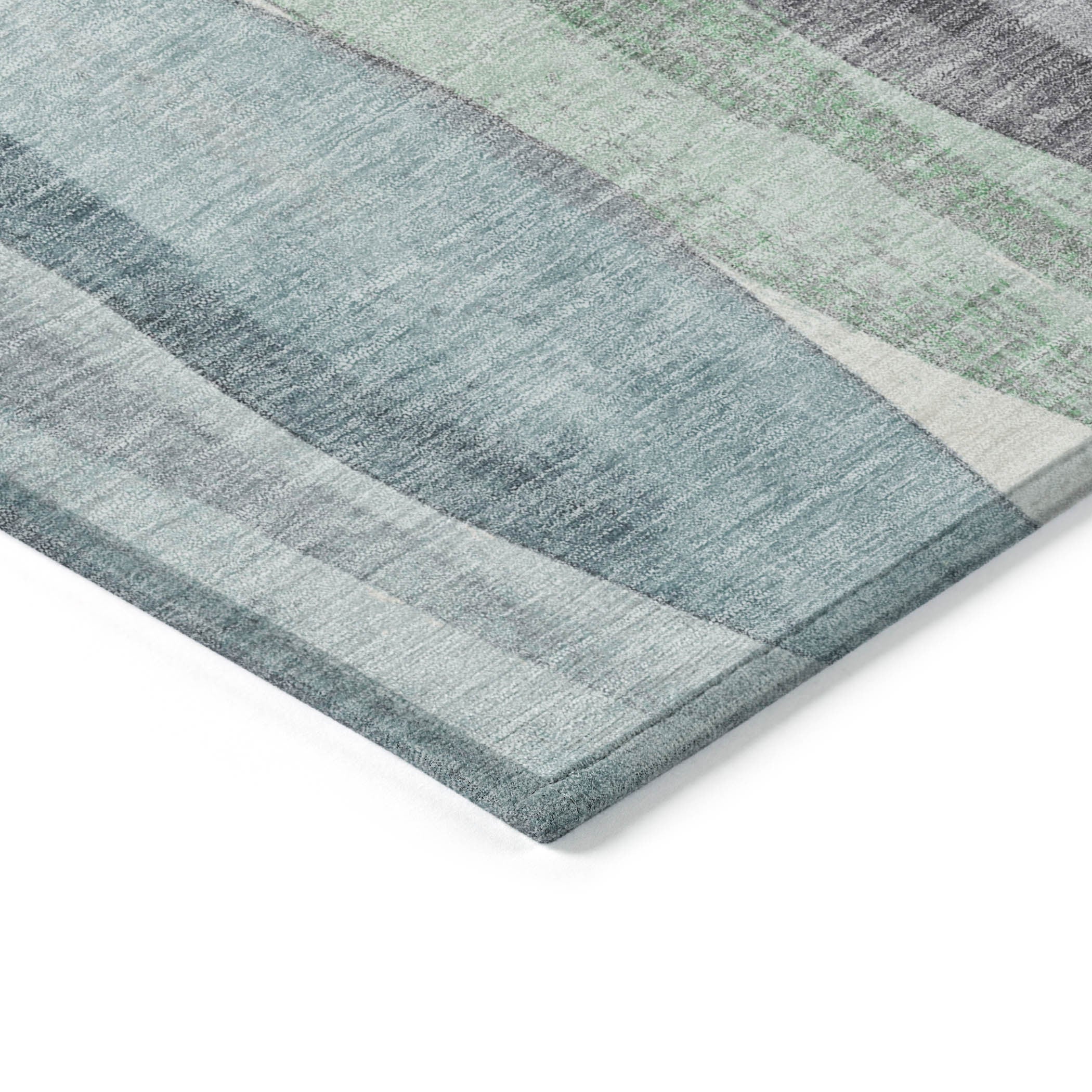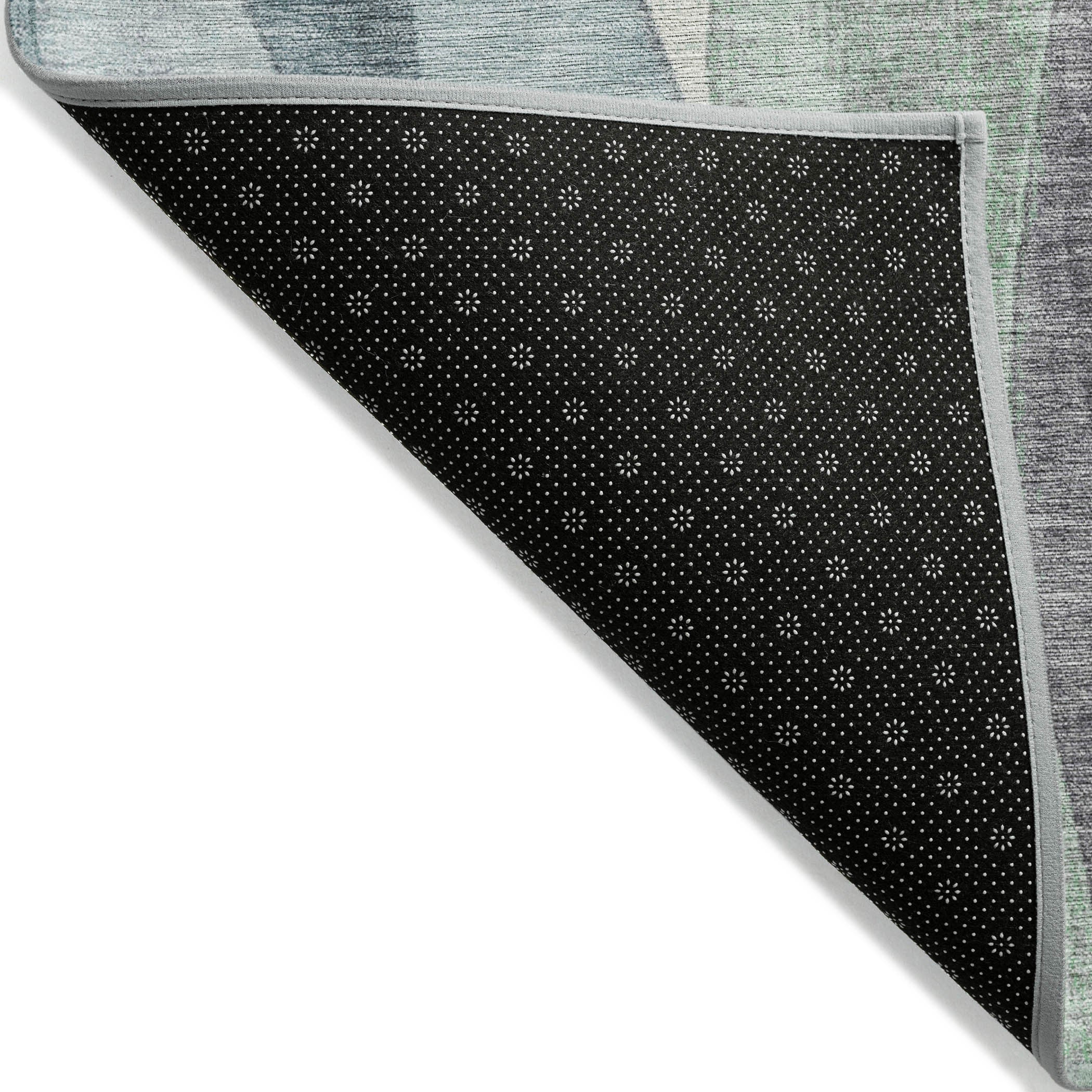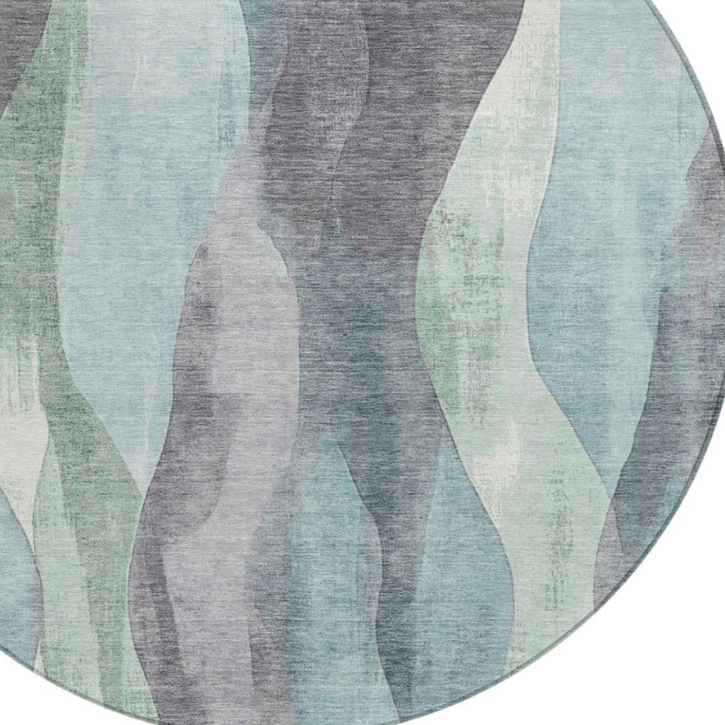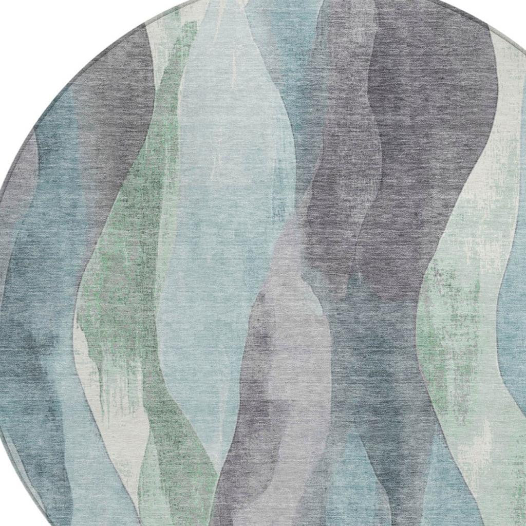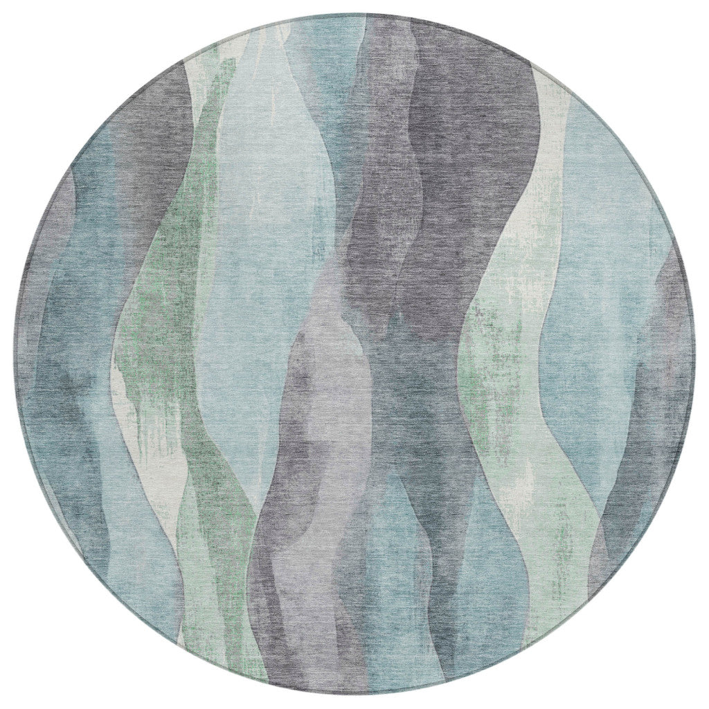 8' Teal Blue And Fern Green Round Abstract Washable Indoor Outdoor Area Rug