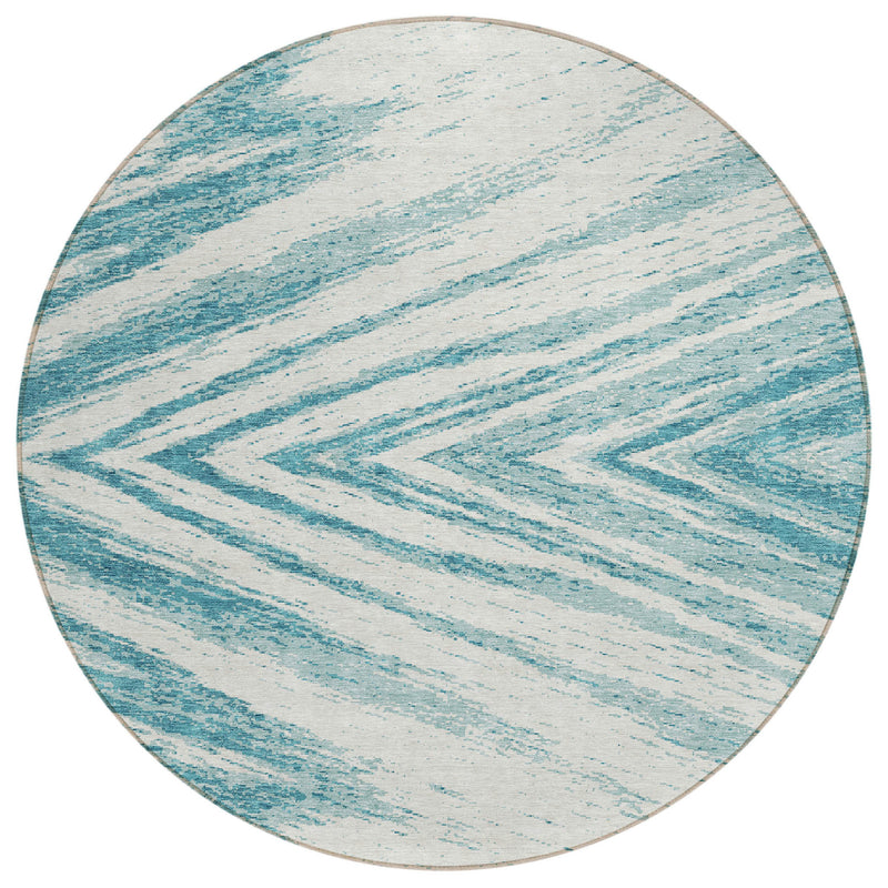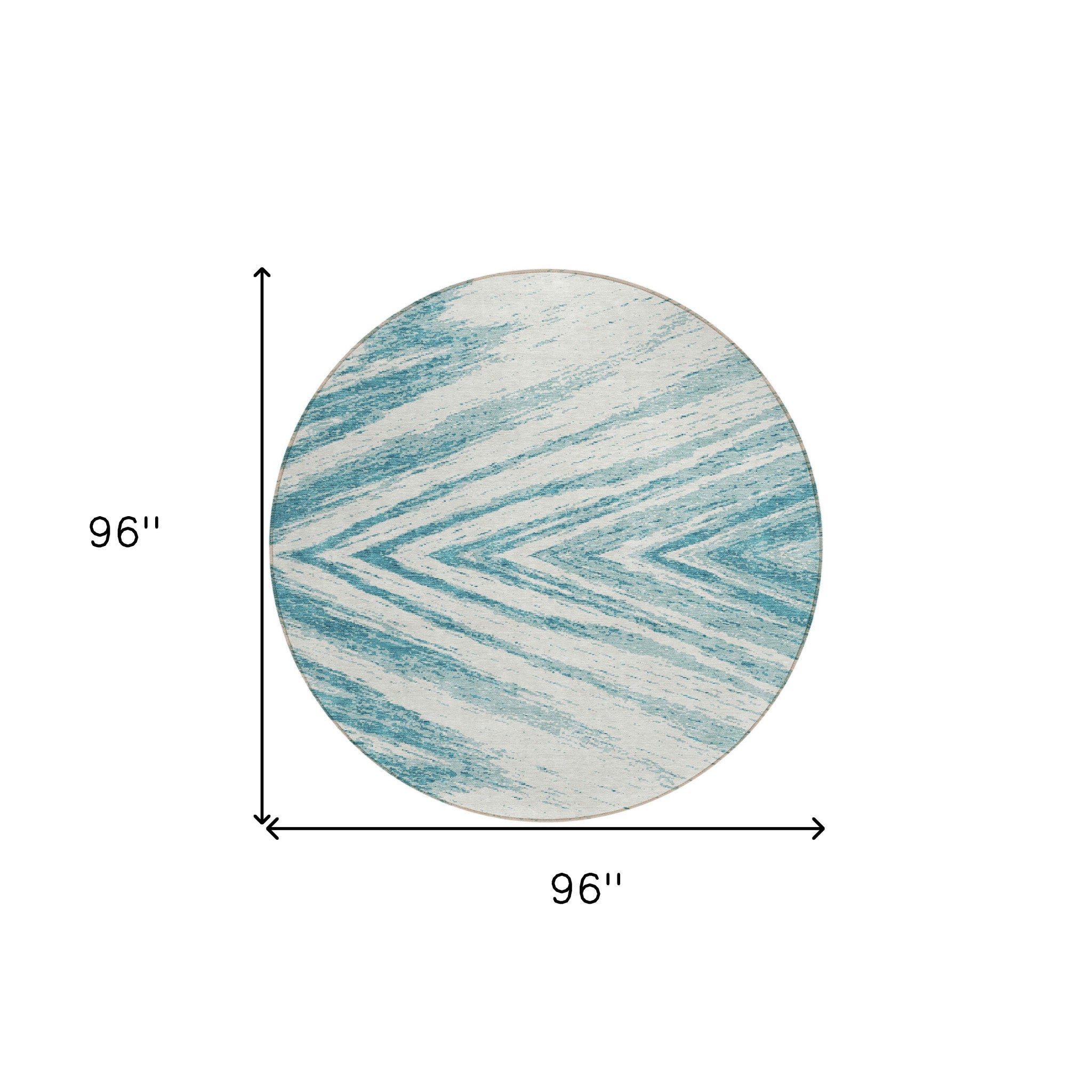 8' Teal Blue And Ivory Round Abstract Washable Indoor Outdoor Area Rug