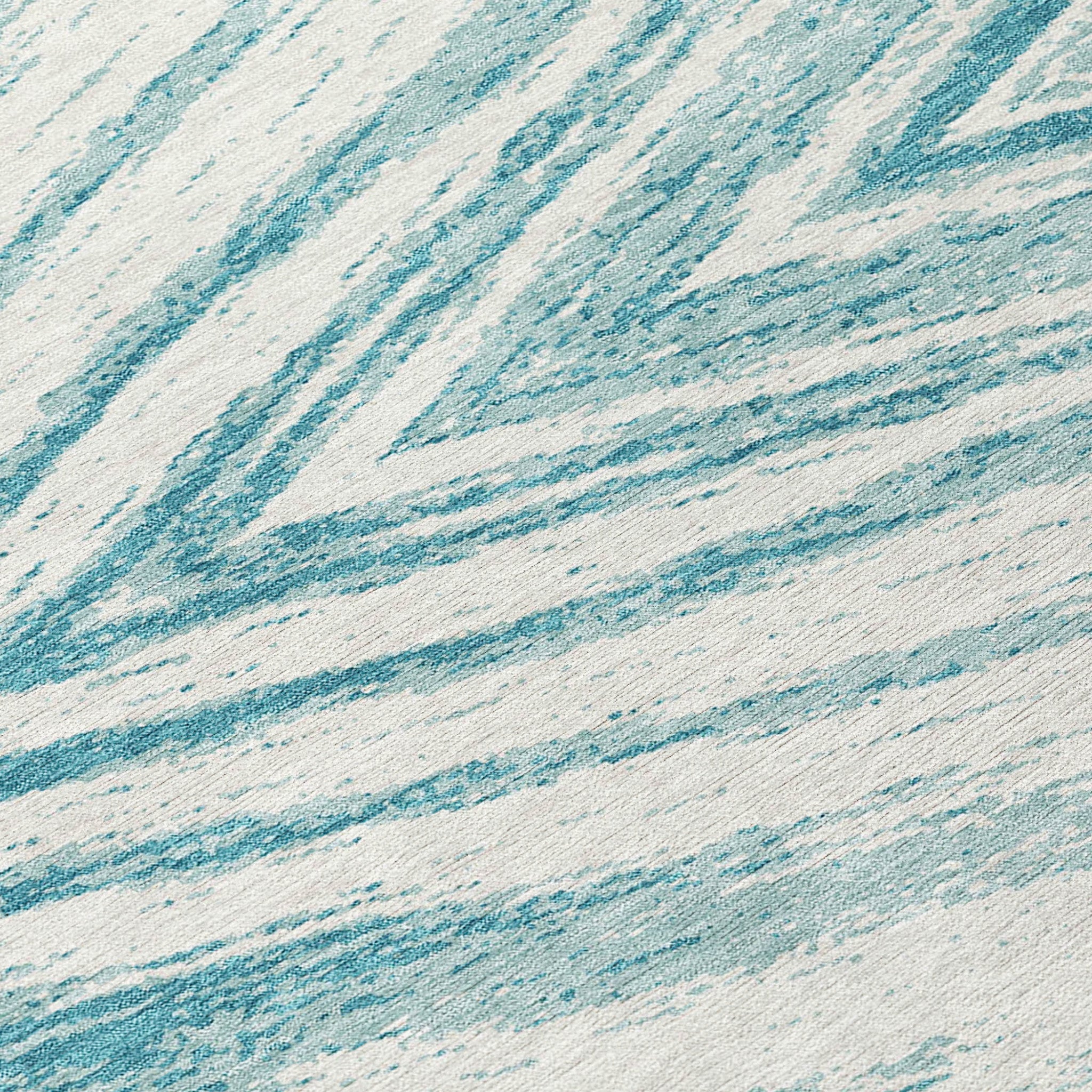 Add some artistry to your room with this 8-foot teal blue and ivory round abstract washable indoor outdoor area rug. This geometric round shaped rug features a abstract pattern in teal blue and ivory that combines a good looking print with a unique and updated shape. The mix of shape, color, and design gives this rug refreshing visual interest. Ideal for outdoor spaces or high traffic areas with kids and pets, this rug is made from heavy duty polyester that is stain resistant to help repel water, dirt, and stains. Versatile in use, durable, and easy to maintain, this rug is an ideal solution to add a decorative and inviting touch to your indoor or outdoor space. 96-inch h x 96-inch w x 0.19-inch d.