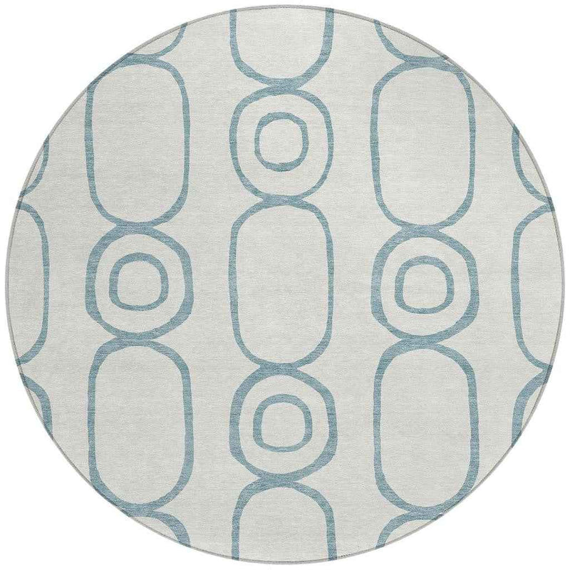 8' Teal Blue And Ivory Round Geometric Washable Indoor Outdoor Area 跳到内容