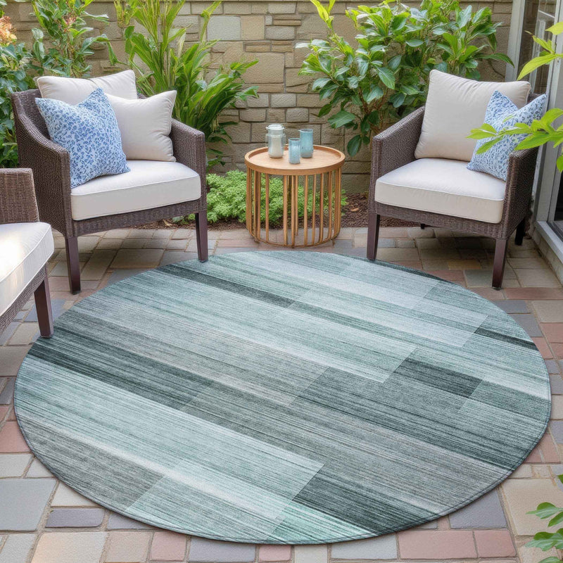 8' Teal Blue And Ivory Round Striped Washable Indoor Outdoor Area Rug