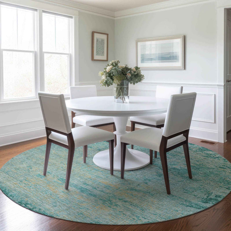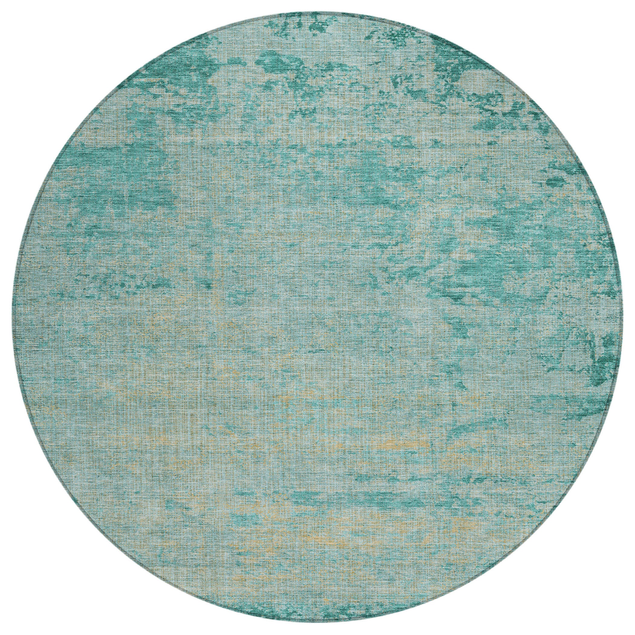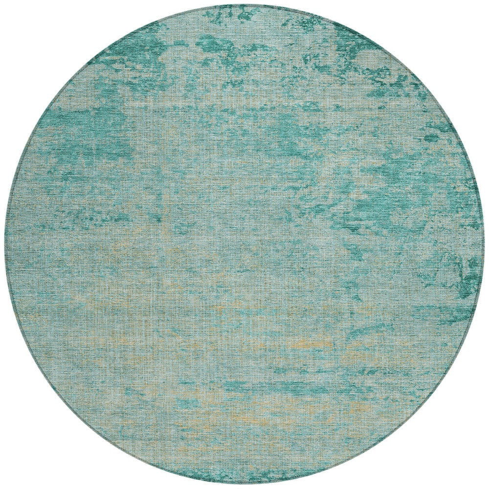 8' Teal Blue And Wheat Round Abstract Washable Indoor Outdoor Area Rug 跳到内容