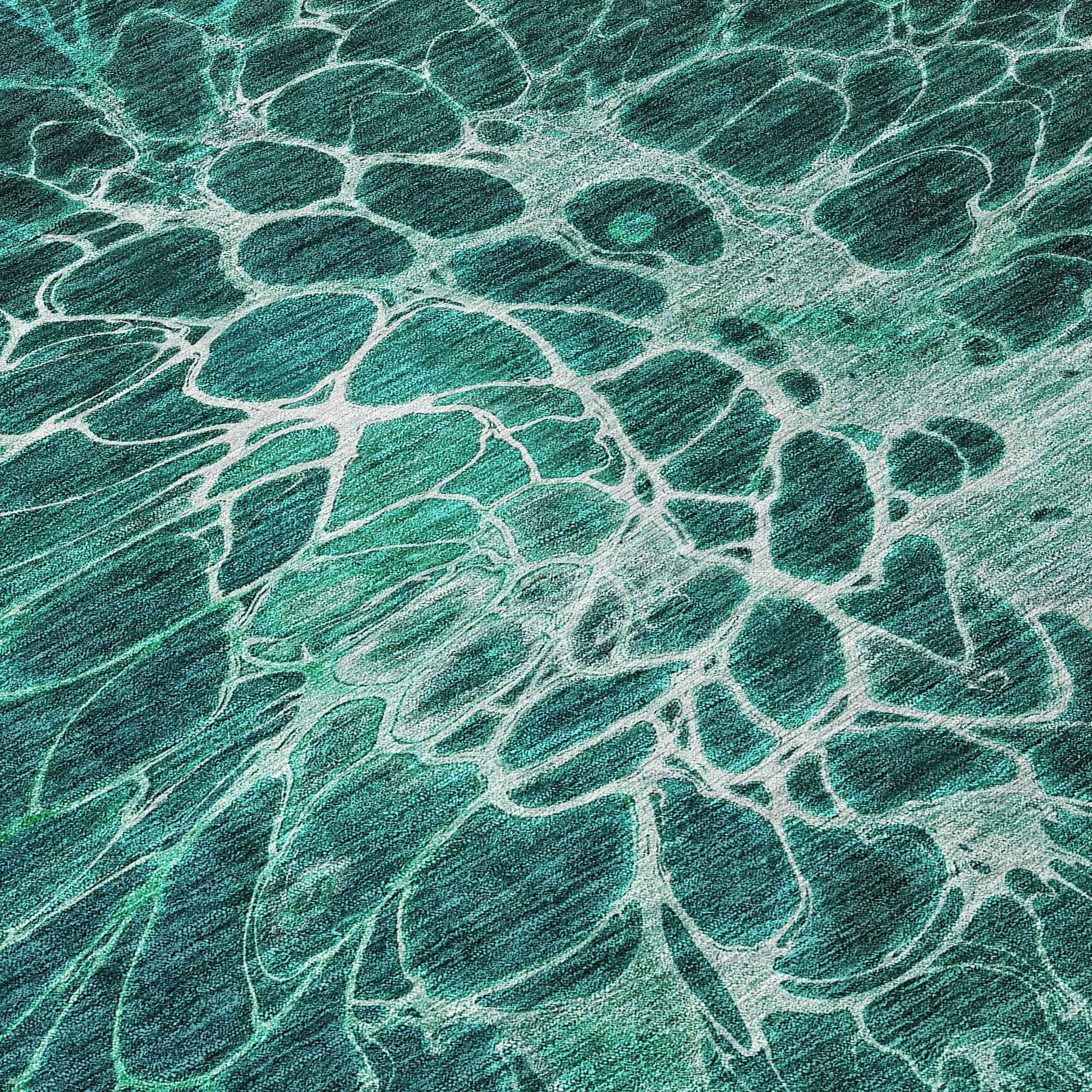 8' Teal Blue Aqua And Turquoise Round Abstract Washable Indoor Outdoor Area Rug
