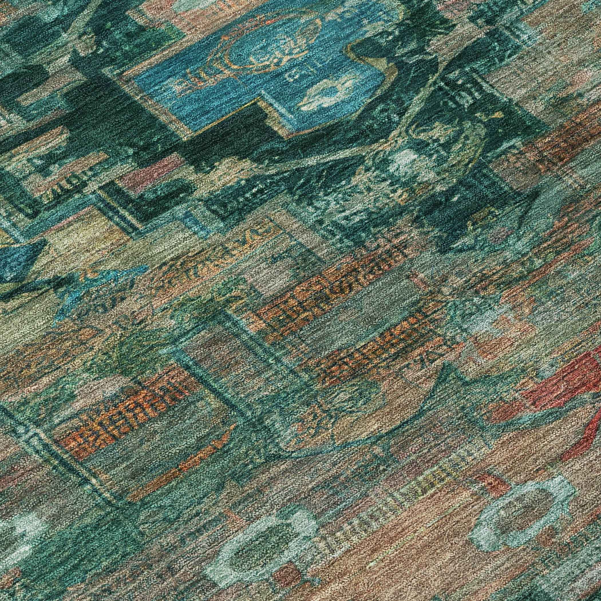8' Teal Blue Copper And Gold Round Tribal Washable Indoor Outdoor Area 跳到内容