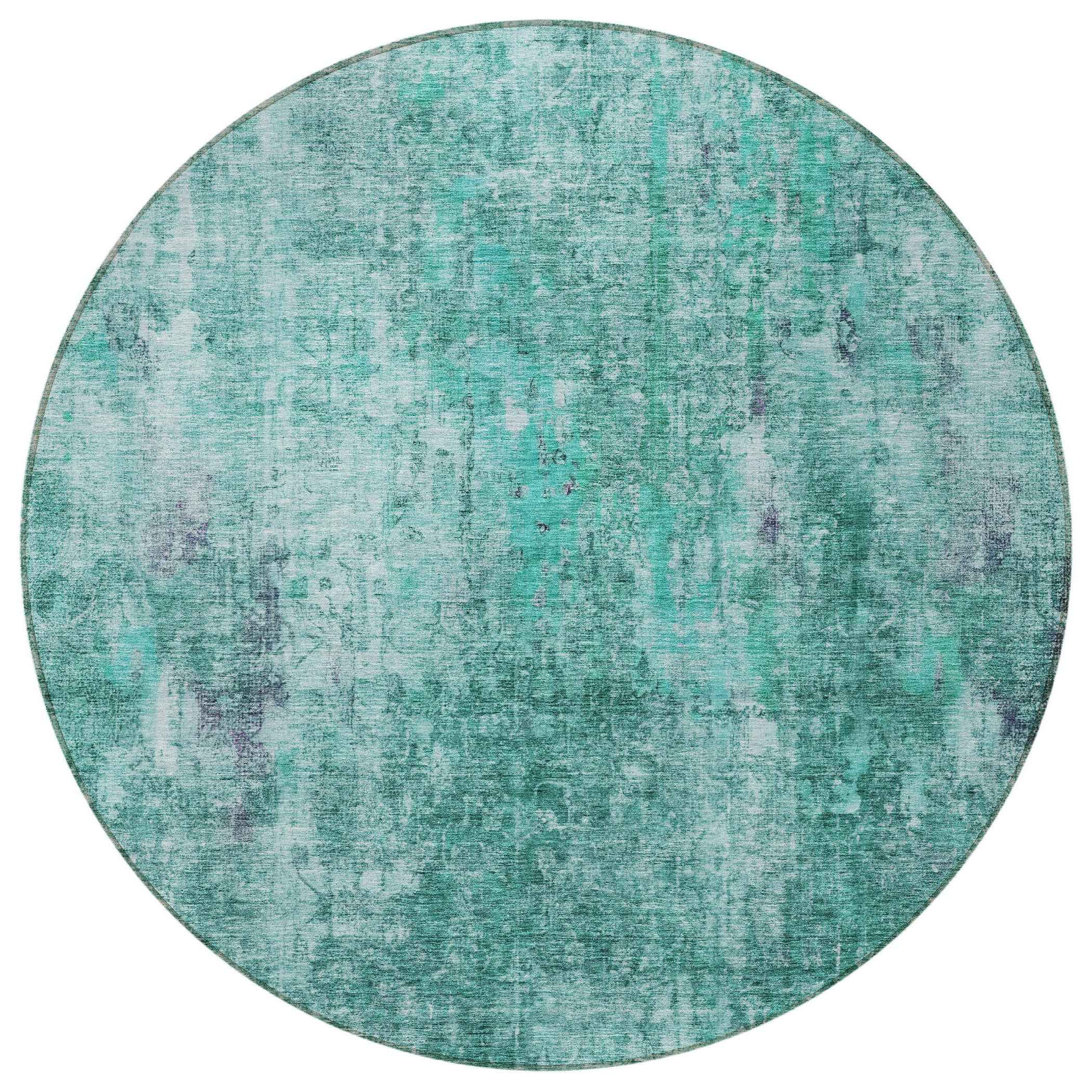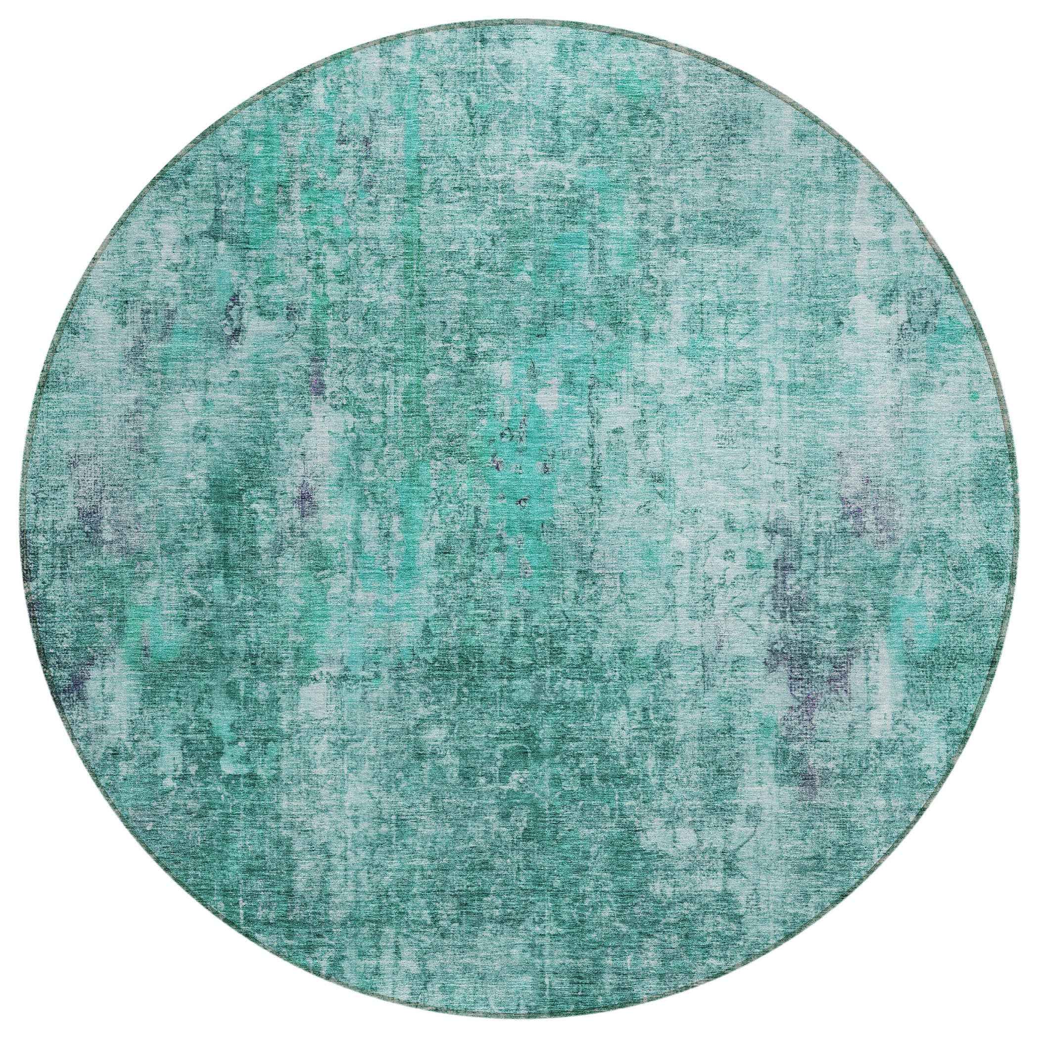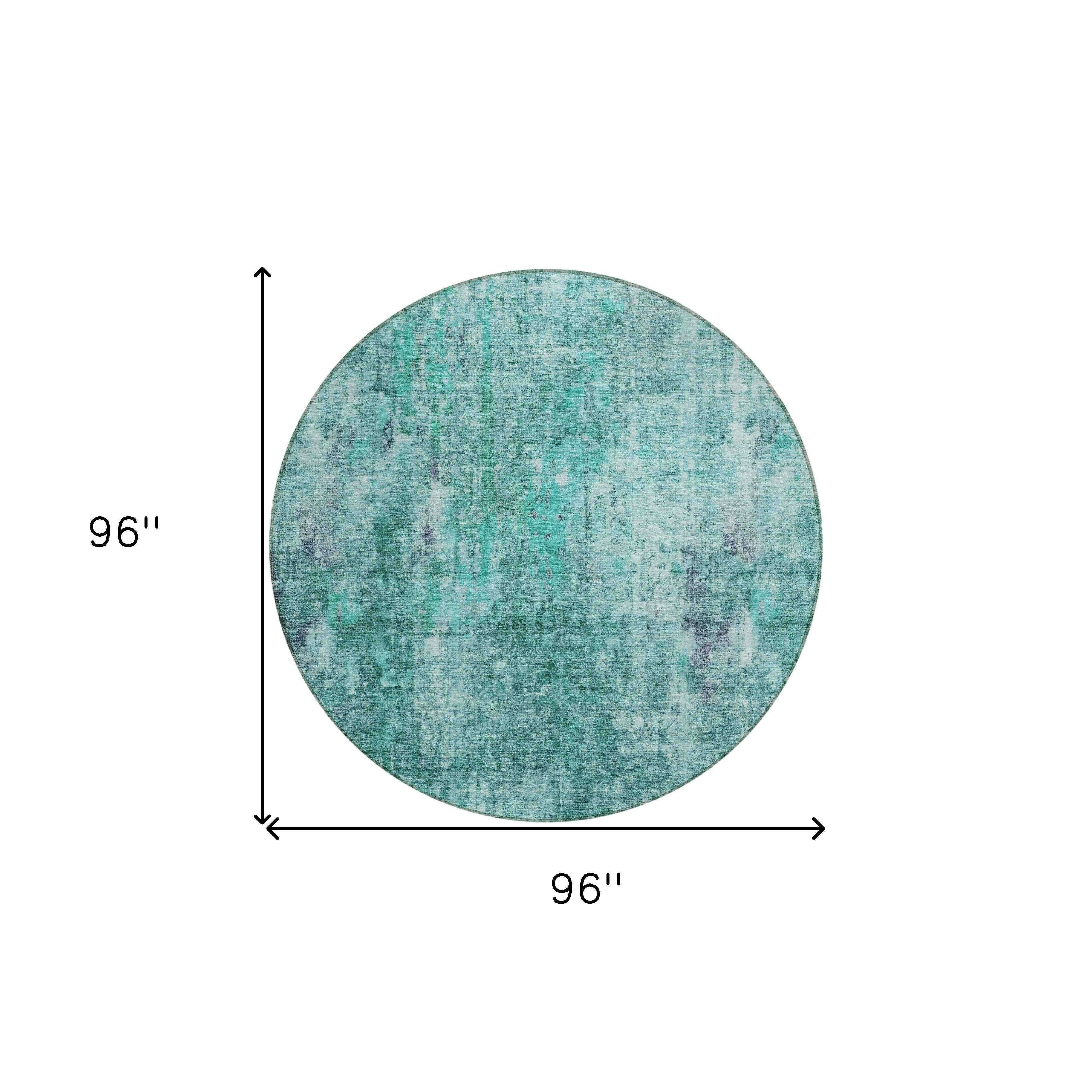 8' Teal Blue Green And Gray Round Abstract Washable Indoor Outdoor Area Rug
