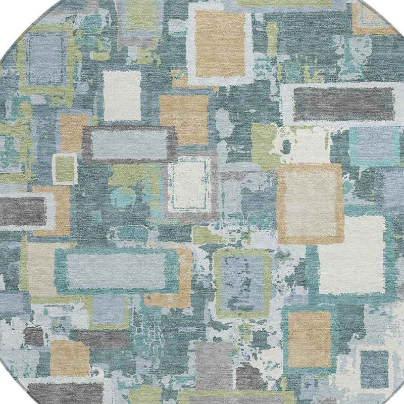8' Teal Blue Green And Ivory Round Geometric Washable Indoor Outdoor 跳到内容