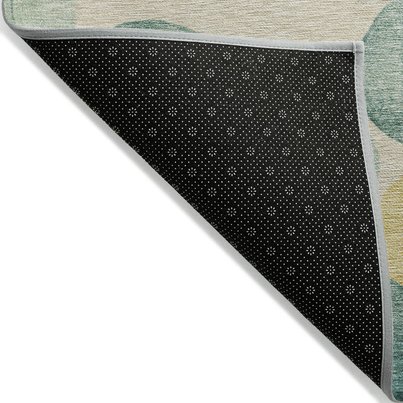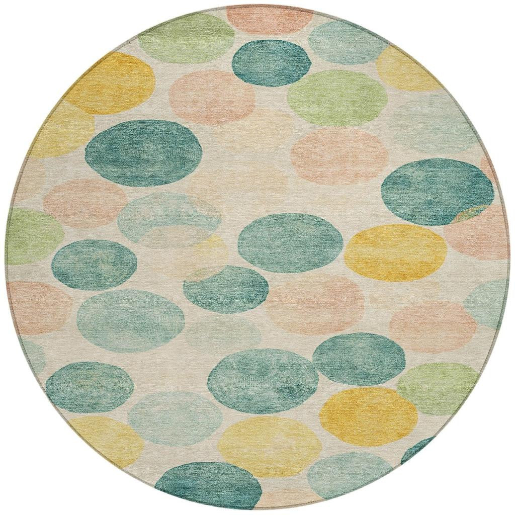 8' Teal Blue Yellow And Peach Round Geometric Washable Indoor Outdoor Area Rug 跳到内容