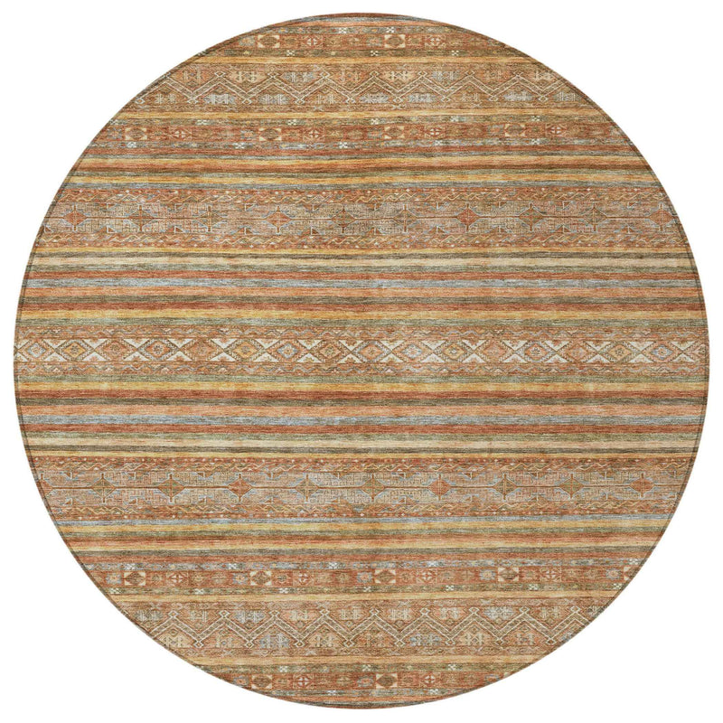 8' Terra Cotta Copper And Gray Round Southwestern Washable Indoor Outdoor Area Rug