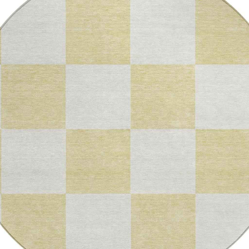 8' Wheat And Beige Round Geometric Washable Indoor Outdoor Area Rug