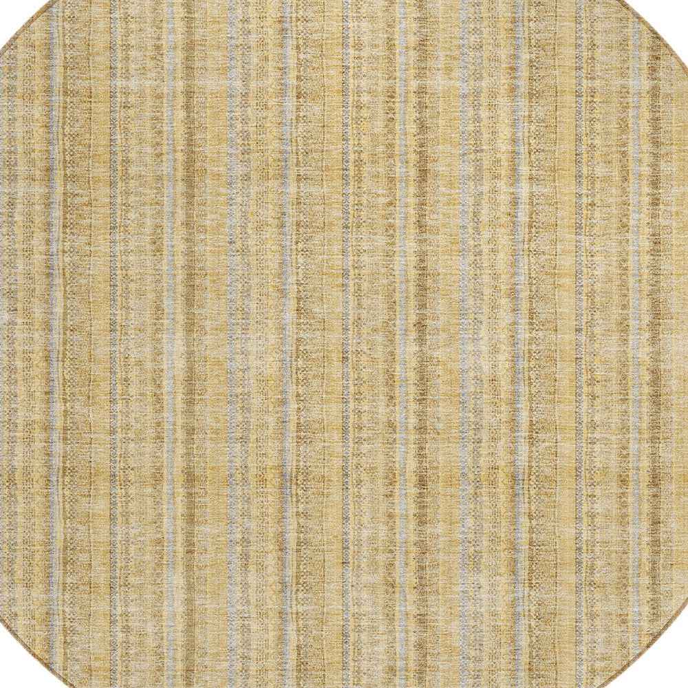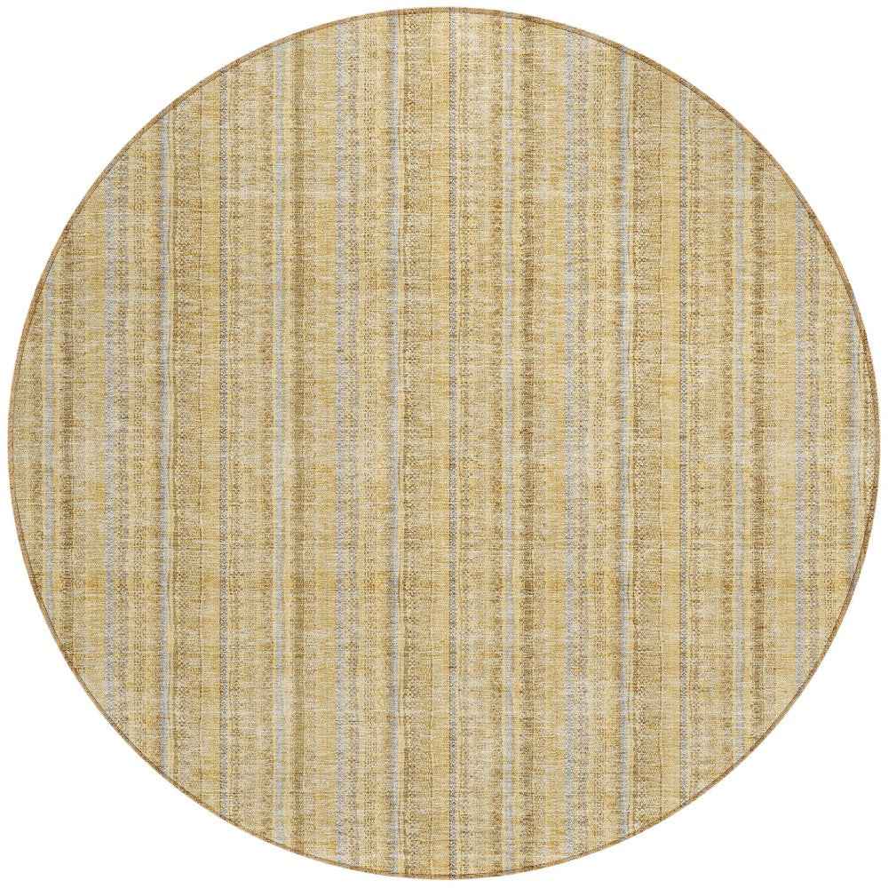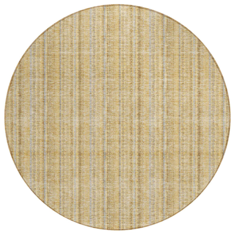 8' Wheat Gold And Gray Round Striped Washable Indoor Outdoor Area Rug