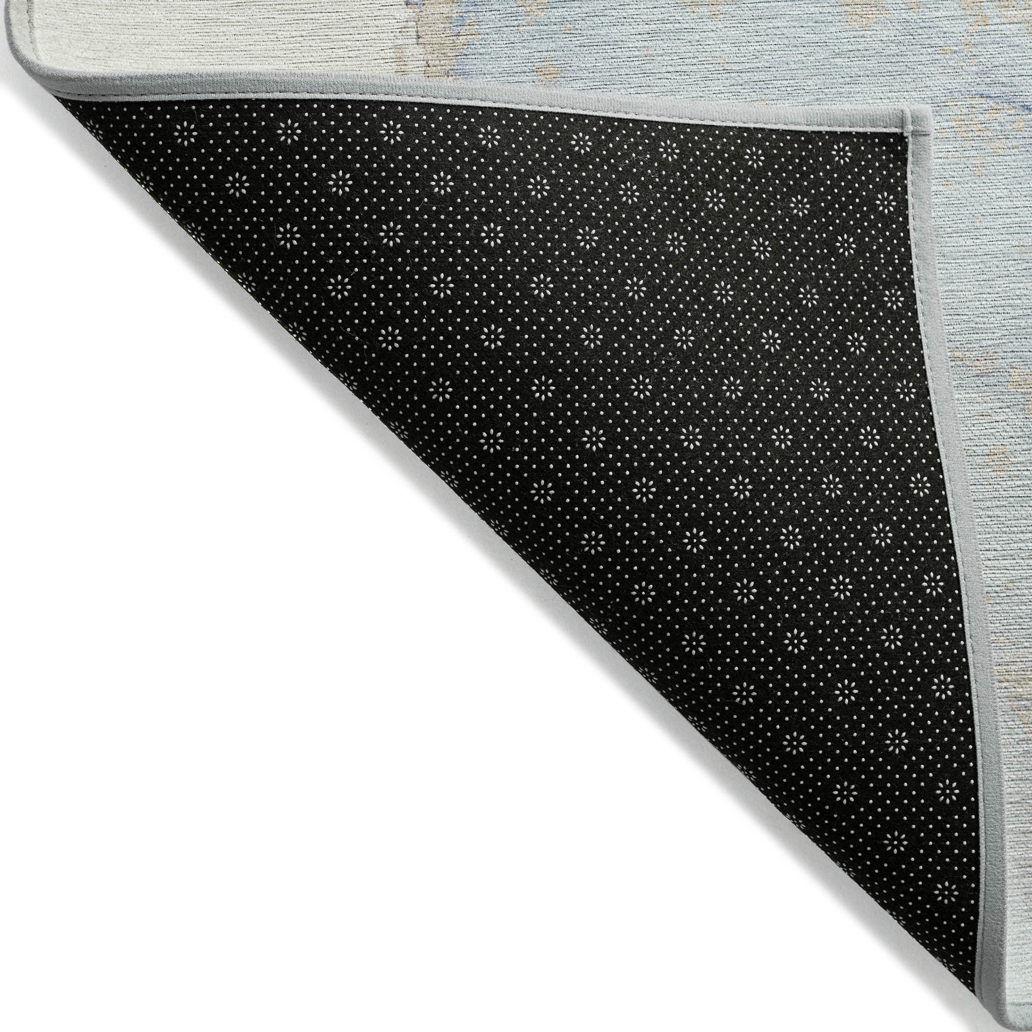 Add some artistry to your room with this 8-foot x 10-foot beige and blue abstract washable stain resistant non skid indoor outdoor area rug. This rectangle shaped rug features a abstract design in beige and blue to give it visual interest. A classic shape marries with good looking design for your space ideal for spaces with kids and pets, this rug is stain resistant to help repel stains and spilled liquids. Place this area rug against a hardwood or tile floor and it will enliven your living space with style and sophistication. 96-inch H x 120-inch W x 0.19-inch D