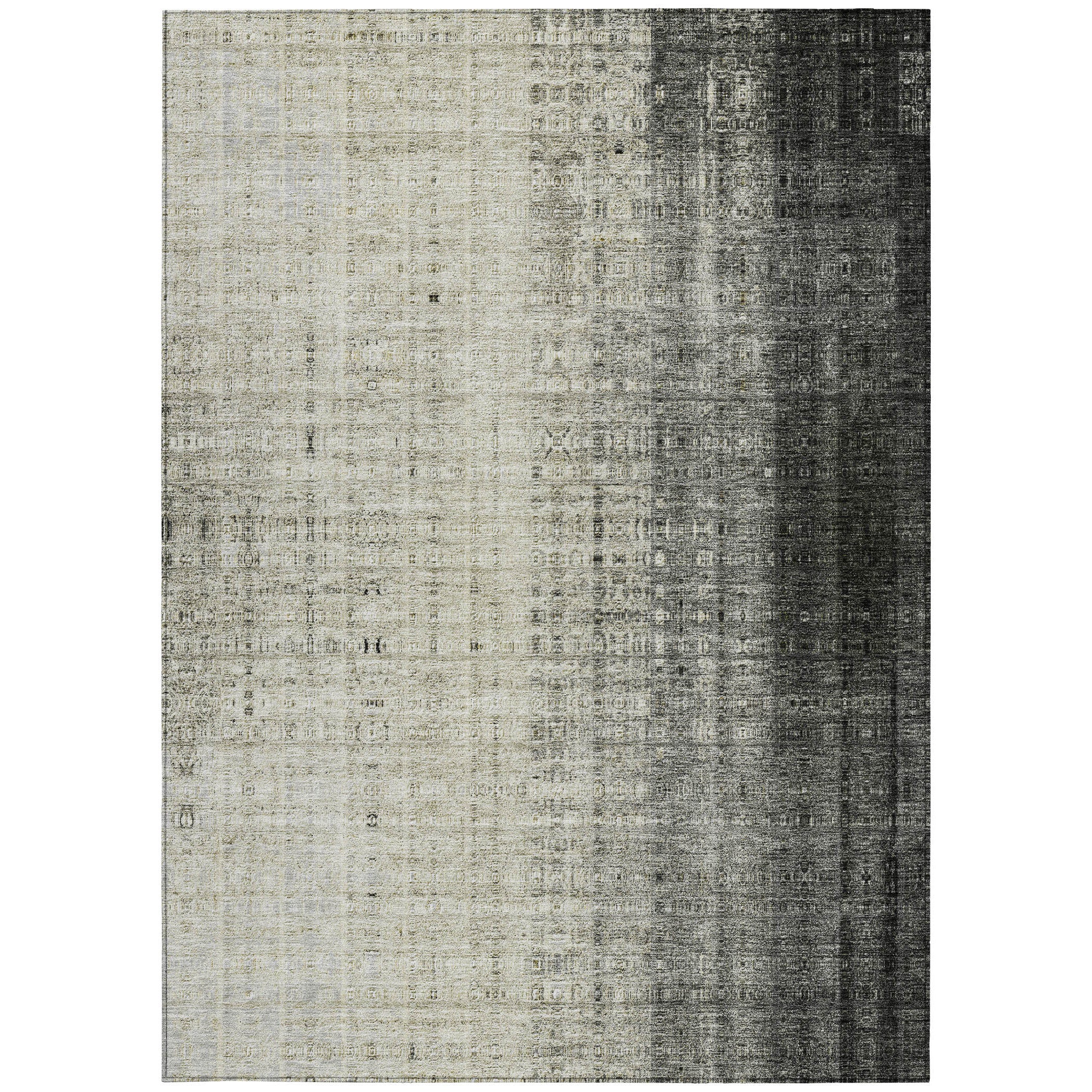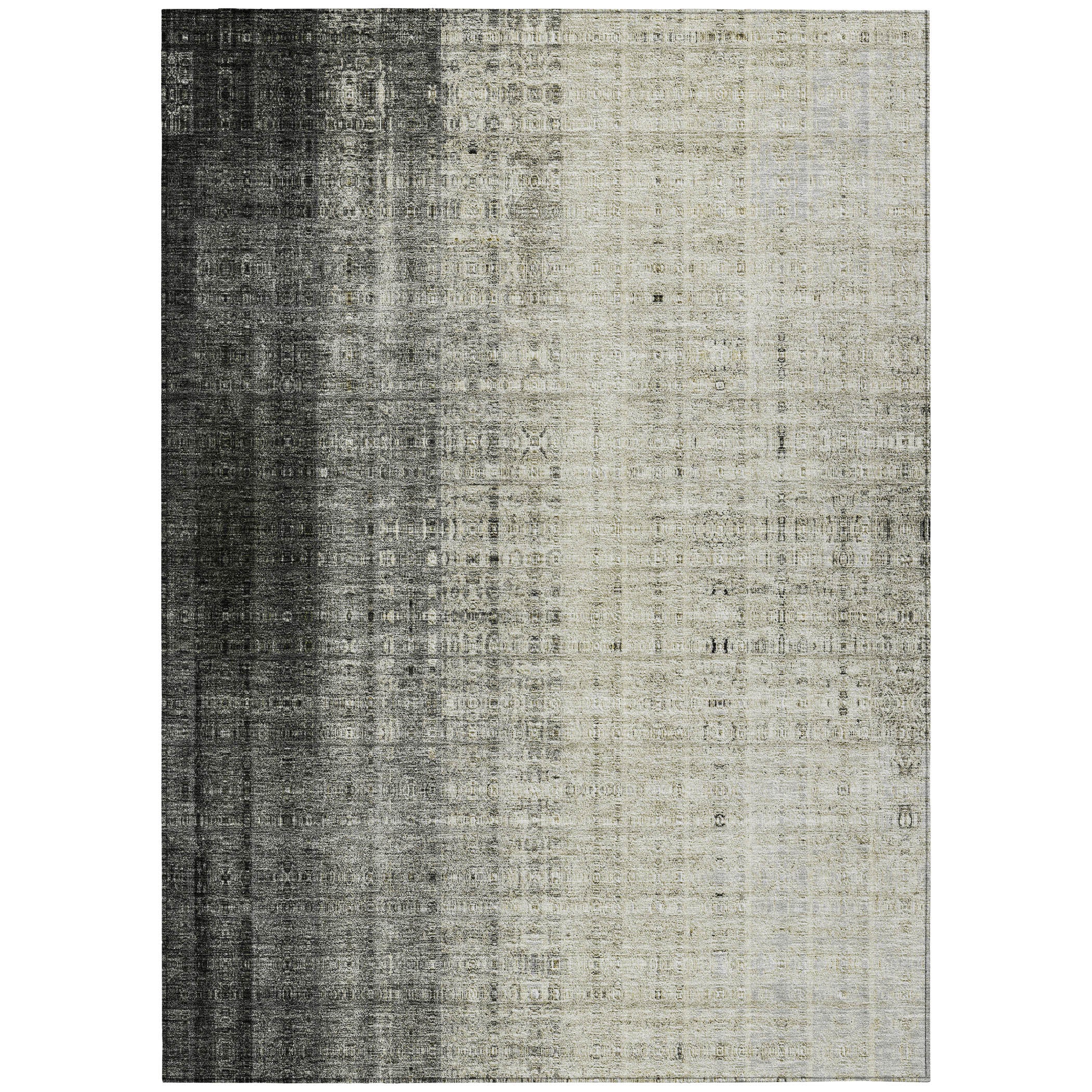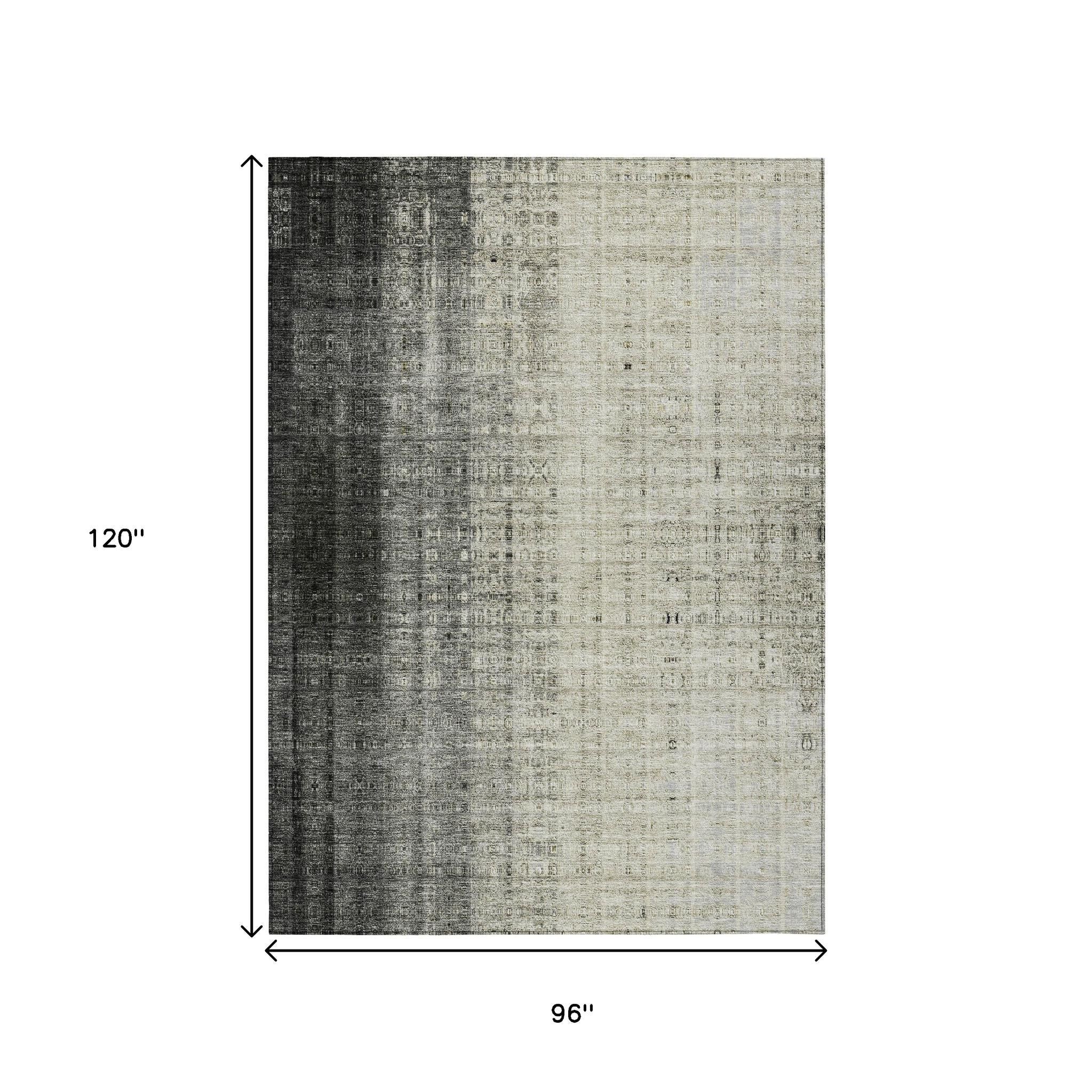 8' X 10' Beige And Gray Striped Washable Indoor Outdoor Area Rug