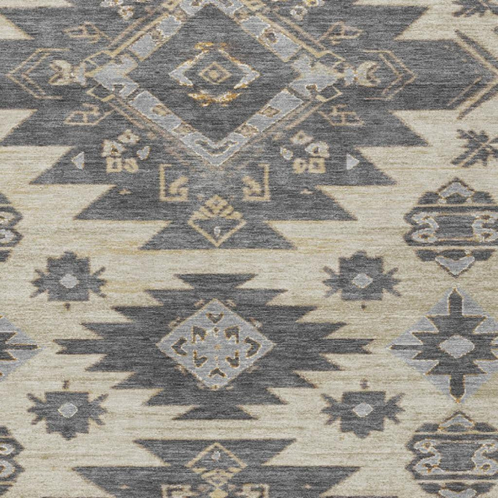 8' X 10' Beige And Gray Tribal Washable Indoor Outdoor Area Rug
