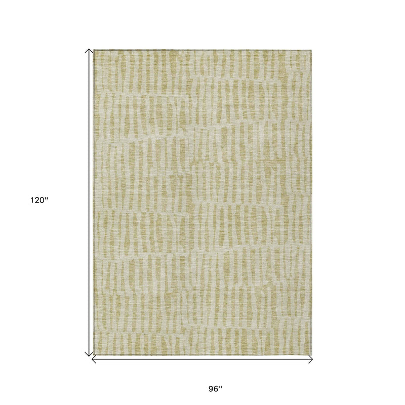 8' X 10' Beige And Tan Striped Washable Indoor Outdoor Area Rug