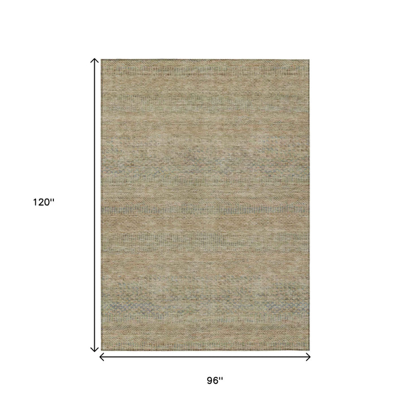 8' X 10' Beige And Taupe Striped Washable Indoor Outdoor Area Rug