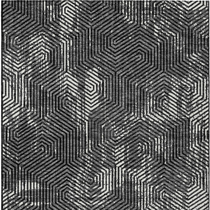 8' X 10' Black And Ivory Geometric Washable Indoor Outdoor Area Rug 跳到内容