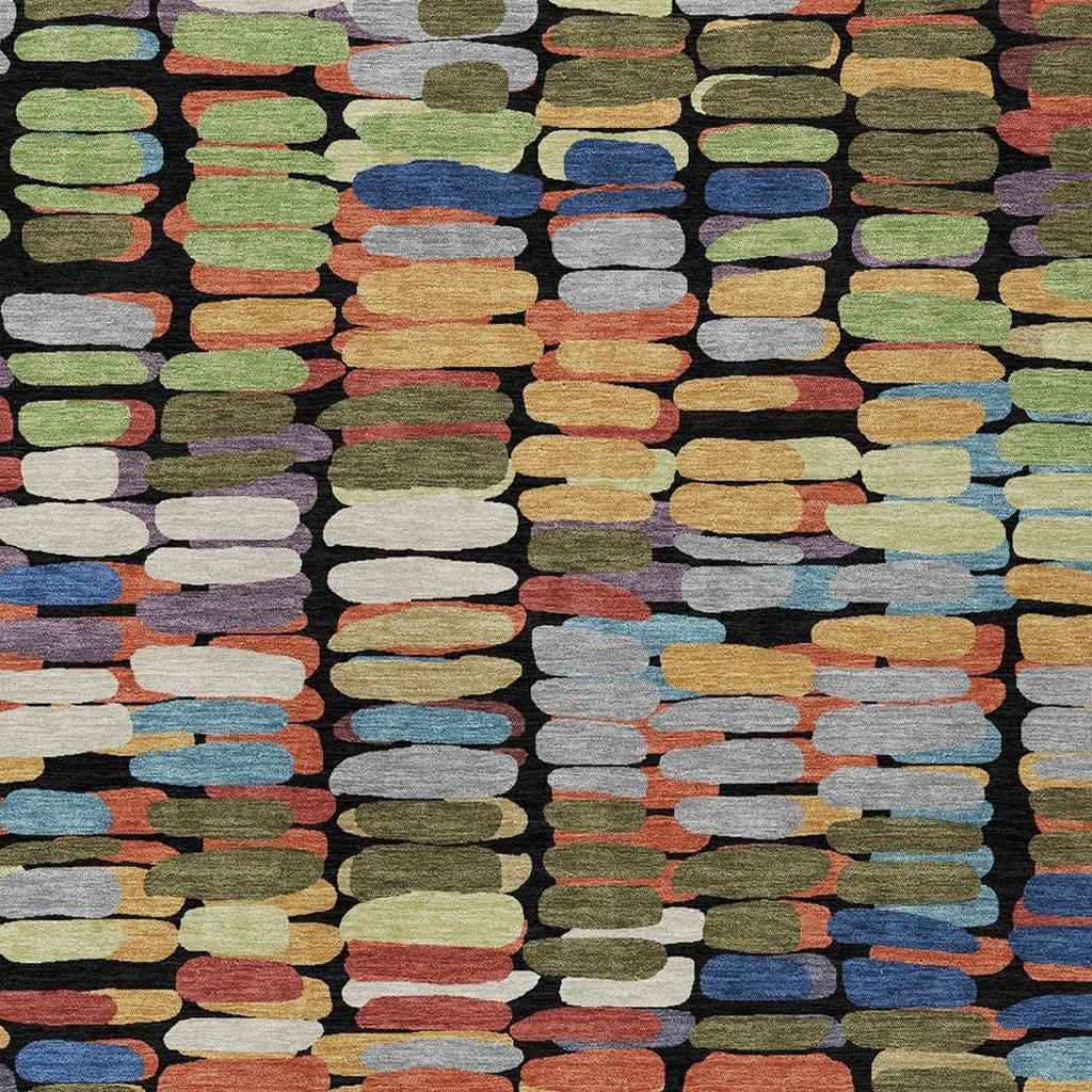 8' X 10' Black Green And Blue Abstract Washable Indoor Outdoor Area Rug