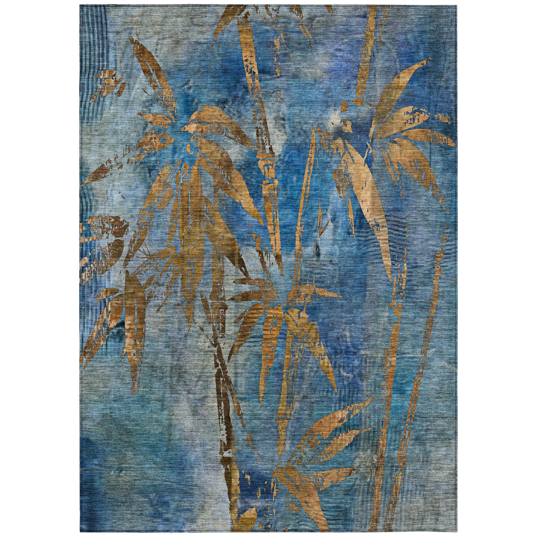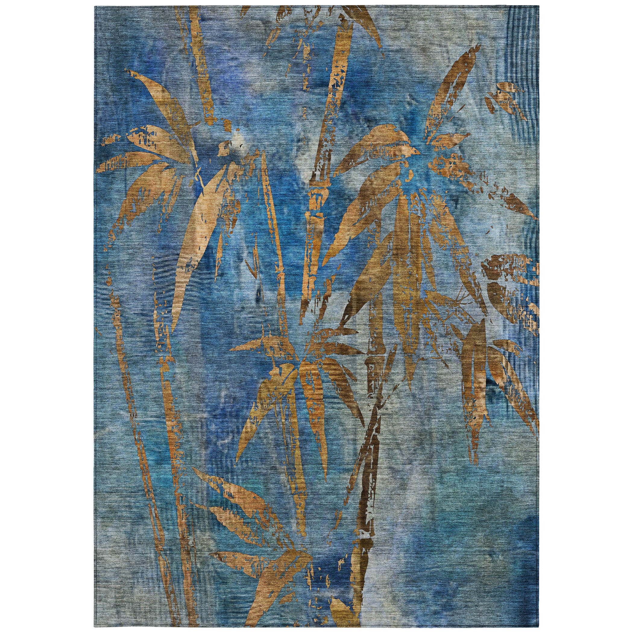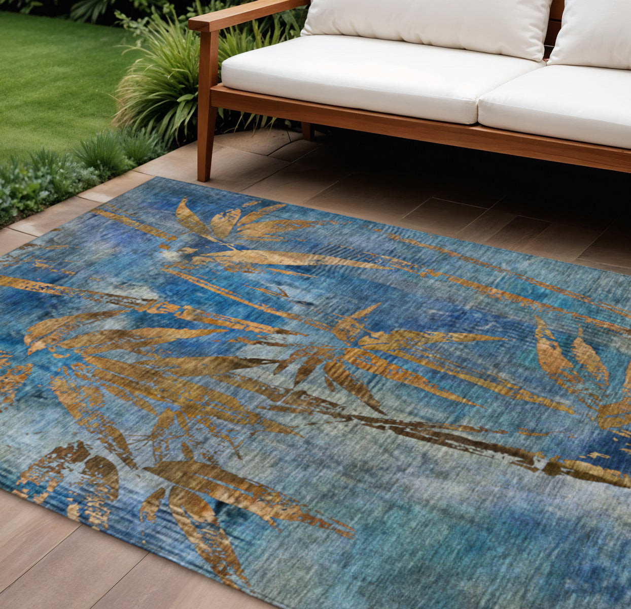 8' X 10' Blue And Brown Botanical Leaves Washable Indoor Outdoor Area Rug