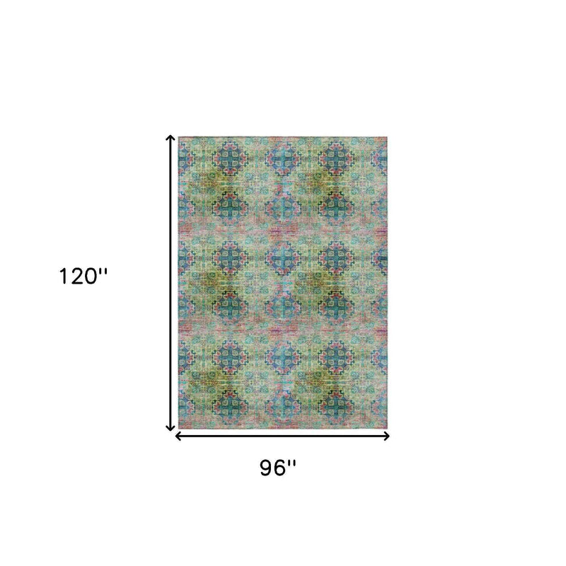 8' X 10' Blue and Green Floral Medallion Washable Non Skid Indoor Outdoor Area Rug